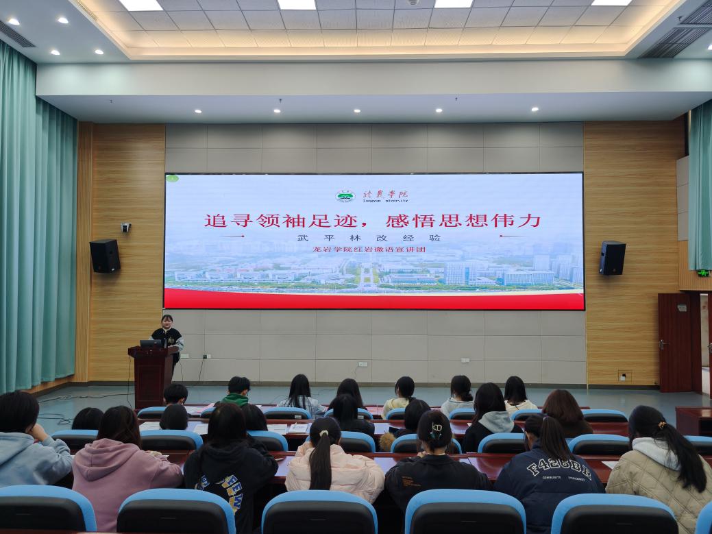 活动中,阮智恩围绕“武平林改经验”作主题宣讲,宣传林改精神,分享习近平总书记四进武平的考察过程,让现场参与的青年学生们深切感受到习近平总书记念兹在兹的为民情怀;鼓励同学们通过结合自身专业和兴趣,明确短期学业计划和明晰未来发展目标及努力方向,在求学发展之路上行稳致远。