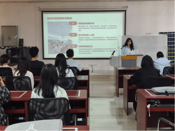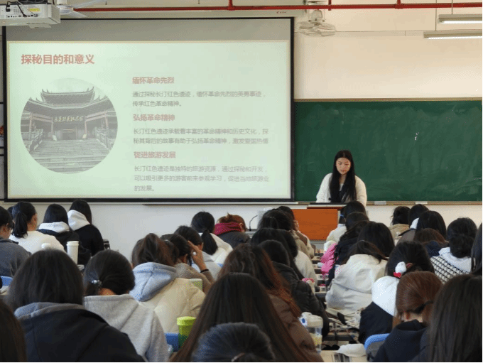 活动期间,支部以党建带团建的方式,指导学生党员和团干通过青年视角讲述长汀红色故事,以影像展映、交流研讨等形式,深入班级开展红色专题宣讲。其中,支部党员2022级旅游管理专业王衍辉作为团队核心宣讲员,结合专业优势,借助长汀红色文化产业发展的典型案例,生动阐释了闽地红色基因在新时代的创新传承路径。2023级国际经济与贸易专业王敏霞在活动后深深感慨:“衍辉学长将晦涩的理论转化为可触摸的案例。他的讲解让我理解到‘传承’不仅仅是记忆,更是行动,既要扎根历史,也要敢于创新。”