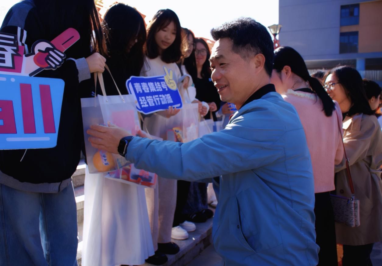 院党委书记李雄文、副书记王春莹、副院长陈岚及各年级辅导员走进学生社区,亲切慰问备考学子,为他们送上定制礼包。院领导与同学们深入交流,对大家迎难而上、笃志前行的精神风貌给予充分肯定。李雄文强调:“学院始终是同学们最坚强的后盾。”鼓励同学们坚定信心、沉着应考,以良好的心态迎接挑战。