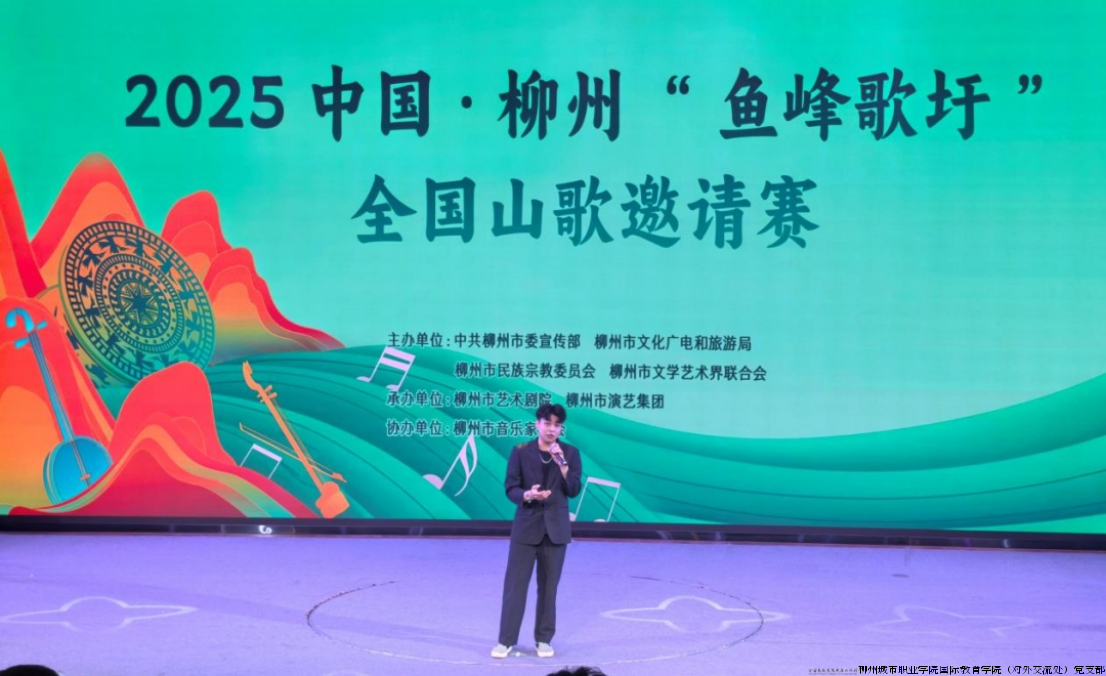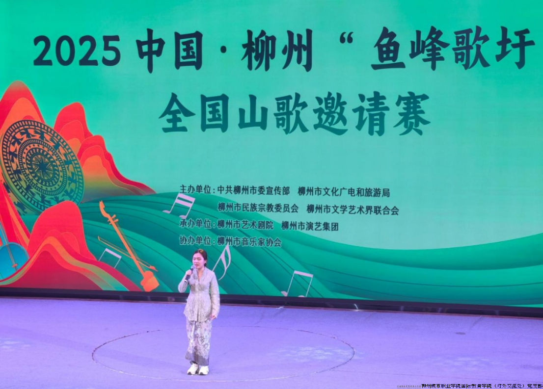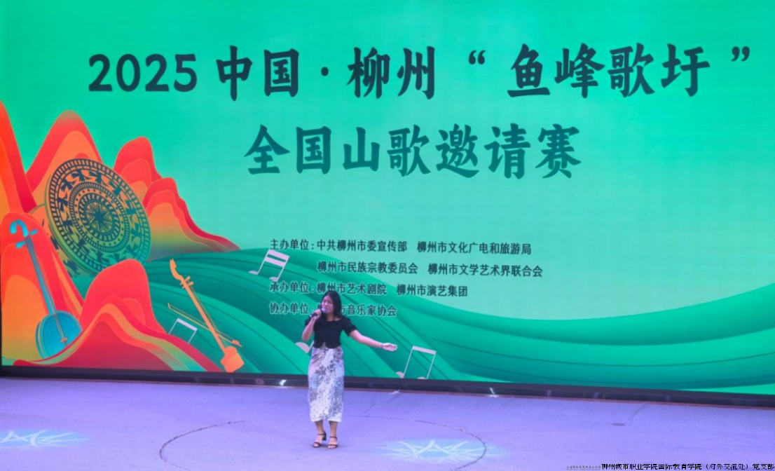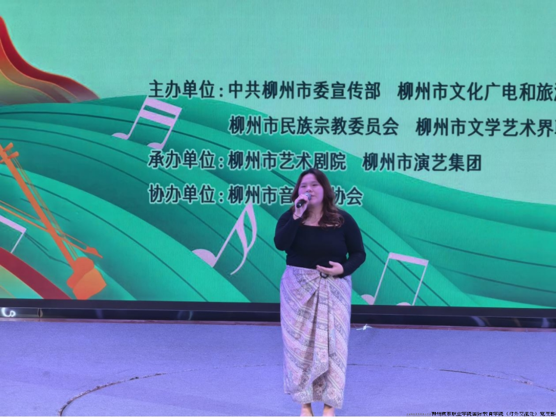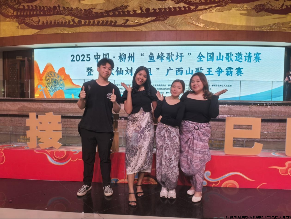 在紫荆花绚烂绽放的美好时节,第十二届中国·柳州“鱼峰歌圩”全国山歌邀请赛盛大开幕。这一备受瞩目的赛事,由柳州市文化广电和旅游局精心承办,广西音乐家协会鼎力协办,柳州市艺术剧院具体执行,吸引了全国各地众多优秀山歌选手踊跃参与。值得一提的是,我院有 7 名分别来自老挝和印尼的学生参赛,他们带着本国的独特文化,用美妙歌声为“鱼峰歌圩”注入了多元文化的绚丽色彩。