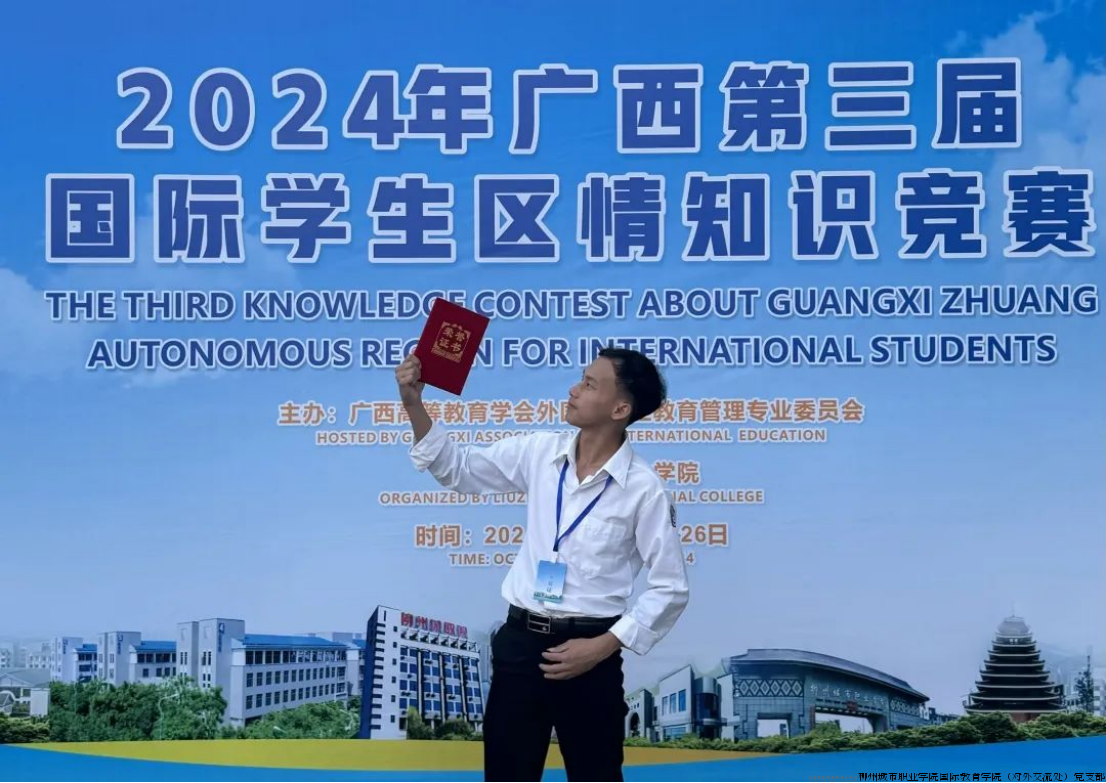 除专业技能之外,王英更以文化使者的身份搭建友谊之桥。在广西区情知识竞赛中,他以“当代马可·波罗”的视角,斩获个人赛二等奖及团体赛一等奖;中华经典诵读大赛上,其声情并茂的《将进酒》朗诵让千年诗韵跨越国界;原创短视频《寻风寻村》以独特的异域视角,记录中国乡村振兴的生动实践,荣获2024年中国—东盟青年“看广西”短视频比赛桂冠。