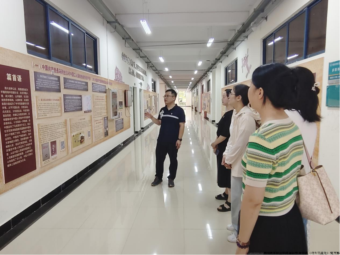 在马克思主义学院思想道德与法治课教研室主任黄俊老师的讲解下,党员们参观了党史学习教育长廊。大家认真聆听,不时驻足观看,通过一幅幅珍贵的历史照片、一段段详实的文字介绍,深入了解了中国共产党波澜壮阔的历史征程,重温了党领导人民浴血奋战的峥嵘岁月,深刻感悟革命先辈坚定的理想信念和不怕牺牲、艰苦奋斗的崇高精神。