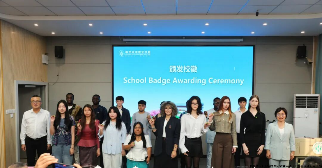 典礼上,学校领导为国际学生代表颁发校徽,并祝愿2025级新同学在未来的学习中谱写出属于自己的青春华章,努力成长为具备全球视野、勇于担当的国际新青年。