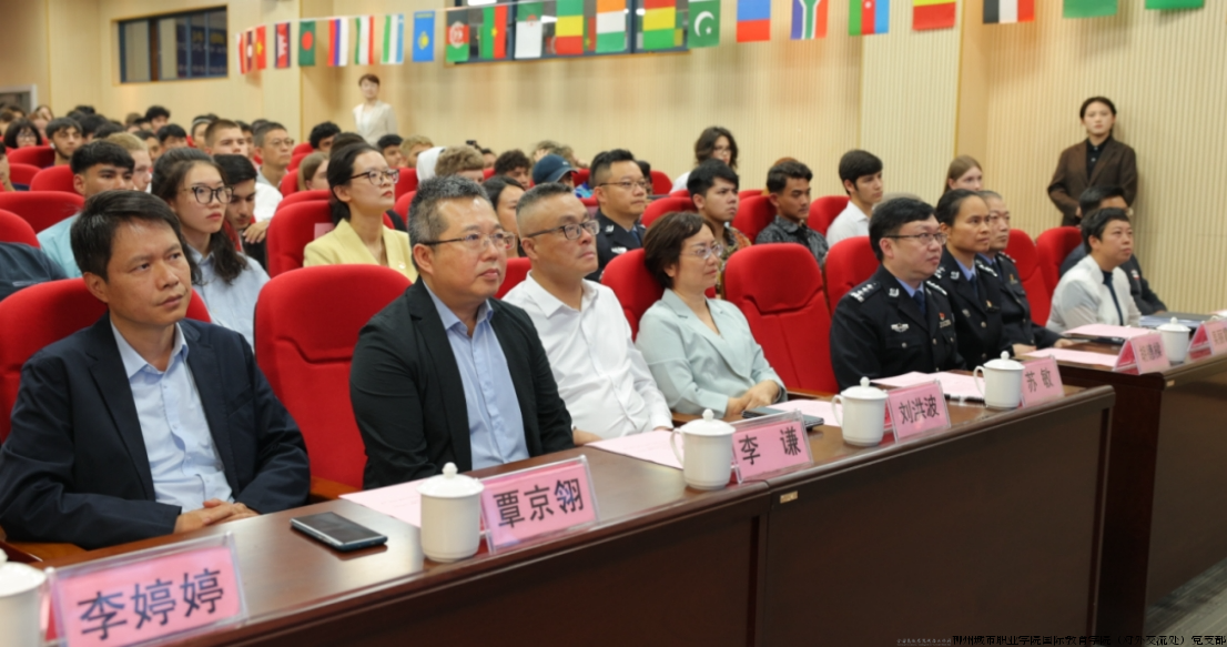 近日,柳州城市职业学院举行2025级国际学生开学典礼。学校校长苏敏、副校长刘洪波、柳州市公安局出入境管理支队党支部书记、支队长胡德樑一行出席典礼,学校相关学院及职能部门负责人、2025级全体国际学生参加典礼。典礼由国际教育学院党支部书记梁超香主持。