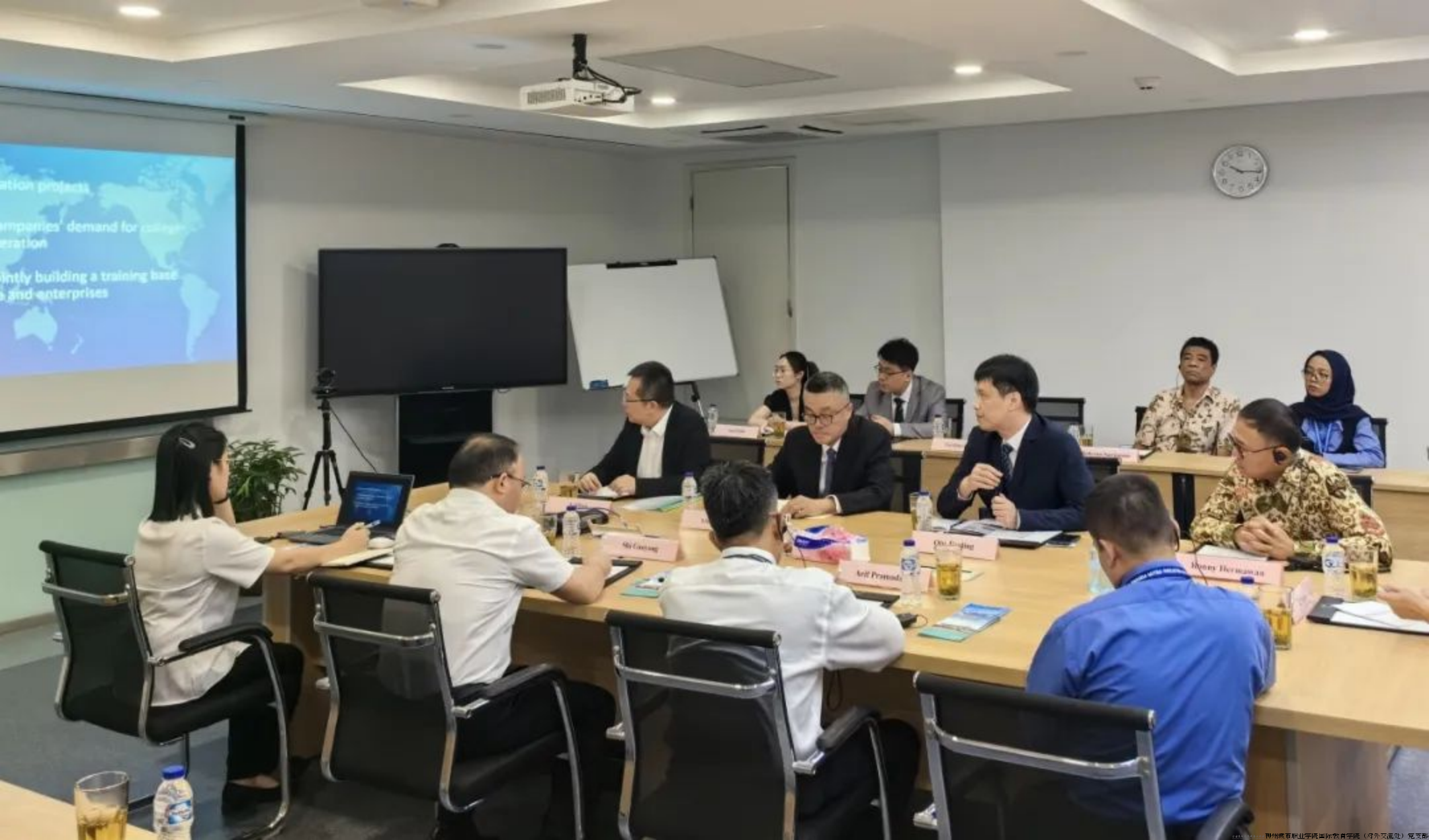 在访问期间,代表团与上汽通用五菱印尼汽车有限公司、阿南达工业职业技术学校以及必利达国民三语学校等合作单位展开了深入的交流和沟通。合作各方就合作内容进行了充分的探讨,一致认为建设工匠学院具有重大意义,并愿意予以全力支持。