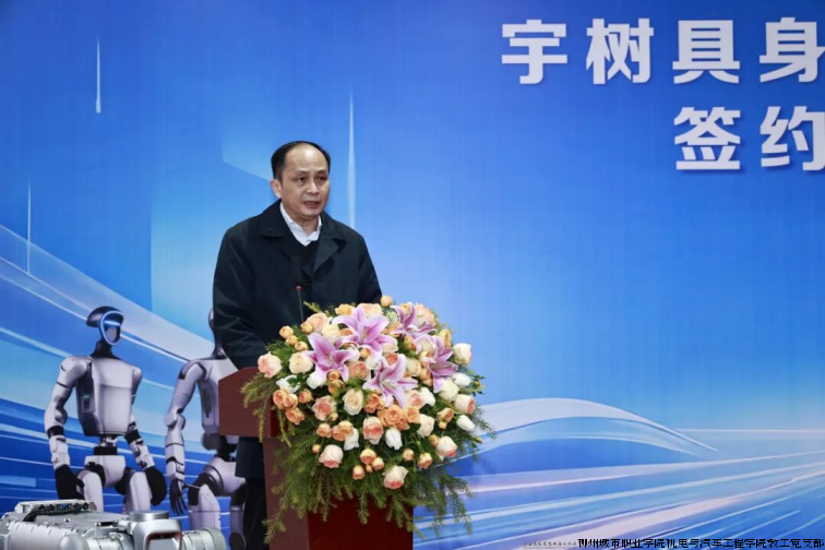 柳州市人民政府副市长胡兰在讲话中强调,柳州是一座工业底色鲜明、创新基因活跃的城市,正全力打造“10+N”现代化工业体系,推进“人工智能+制造”行动,发展壮大人工智能终端及机器人新兴产业集群。“共建‘宇树具身智能机器人学院’,可谓恰逢其时、意义深远。这不仅是三方优势资源的强强联合,更是将前沿技术、真实产业场景与高素质技术技能人才培养深度融合的创新实践。”她表示,市政府将持续优化环境、做好服务,支持学院成果应用转化,共同将学院打造成为我市推进新型工业化、发展新质生产力、建设制造强市建设的强劲引擎。