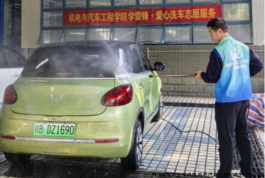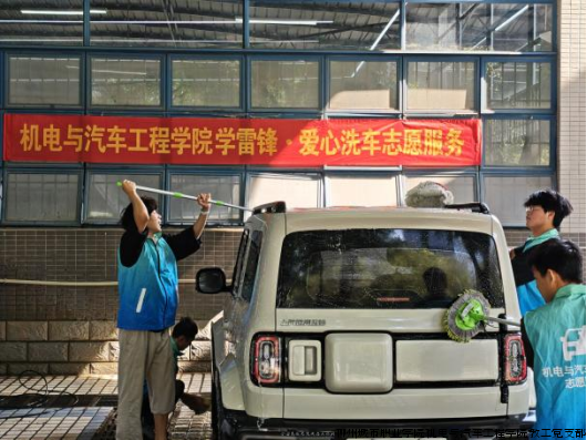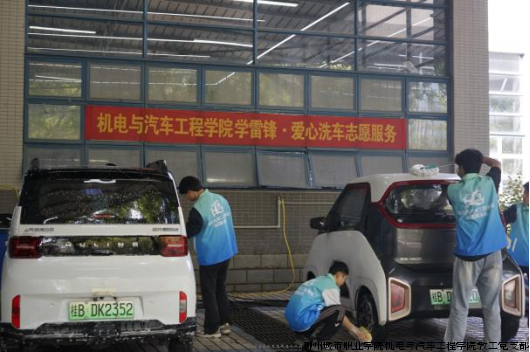 为弘扬雷锋精神,践行志愿服务理念,推动实践育人走深走实,3月13日,在学院教工党支部的积极倡导与精心指导下,机电与汽车工程学院“彩虹工匠”志愿服务队在一号实训楼五菱定制研发中心后侧洗车区,组织开展了主题为“学雷锋 做志愿 专业赋能建新功”的爱心洗车志愿服务活动。活动面向全校教职工及第三方服务人员,旨在通过专业实践服务师生,传递温暖,展现机电学子扎实的技能素养与奉献精神。