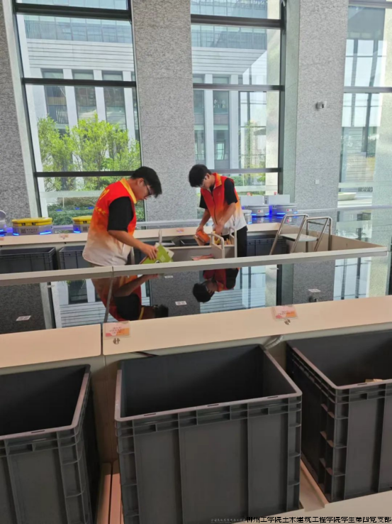天朗气清,金秋而至,共同庆祝中华人民共和国成立75周年。为更好在实践中践行坚定不移听党话、跟党走,弘扬“奉献、友爱、互助、进步”的志愿精神,争做有理想、敢担当、能吃苦、肯奋斗的新时代好青年,积极投身中国式现代化建设,在推进强国建设、民族复兴伟业中勇做志愿先锋。2024年10月20日土木建筑工程学院学生第三党支部、学生第四党支部,在柳州图书馆(柳东馆)联合开展了“书香沁人心,服务暖人行”志愿服务活动。