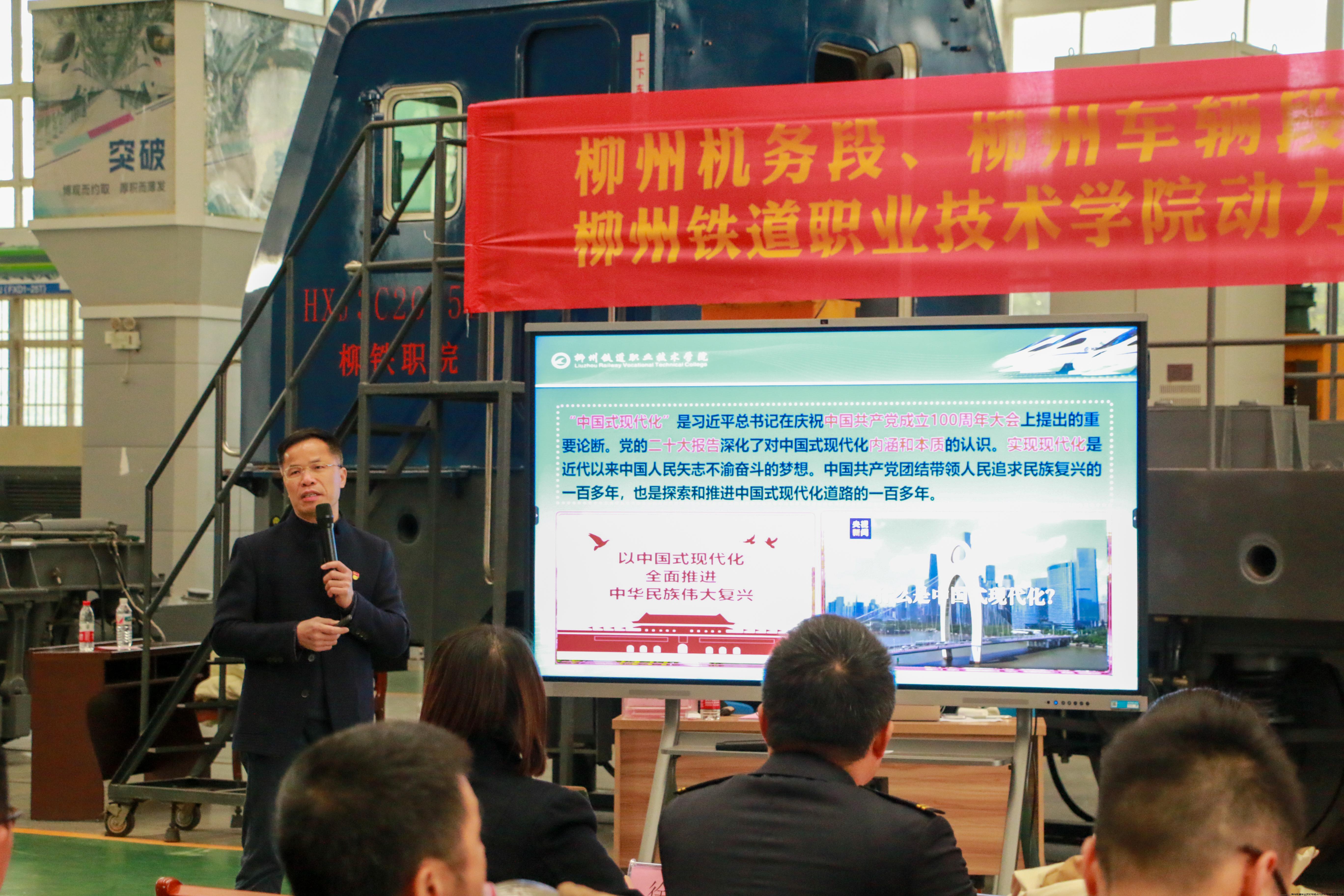 12月19日, 动力技术学院携手柳州机务段、柳州车辆段、柳州站,共同开展“校企共建聚合力,同心共融促发展”为主题的联学联建活动。