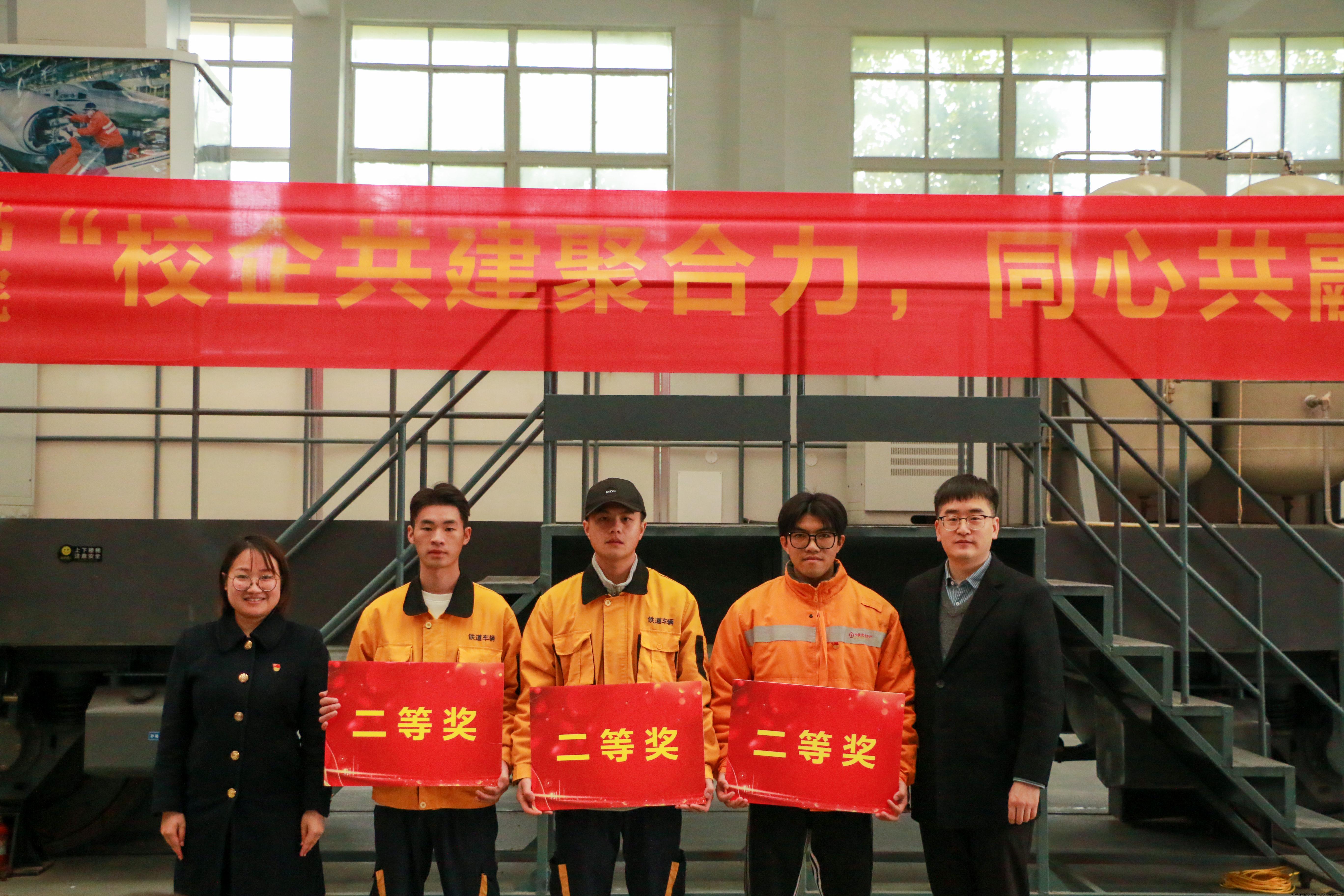 紧接着,嘉宾们为联学联建技能比赛的获奖颁奖,我院14人、柳州车辆段3人、柳州机务段6人在比赛中表现突出,获得了嘉奖。柳州机务段参赛代表韦荣飞、柳州车辆段参赛代表邹智聪以及动力技术学院的学生代表黄邦富上台,与大家分享他们对于这次联建活动的感想和体会。他们一致表示,在工作和学习中,始终保持对事业的真挚热爱与激情,是取得成功的关键。在积极工作的过程中,他们不仅培养了自己的专业技能,也锻炼了自身坚韧不拔、精益求精的品质。