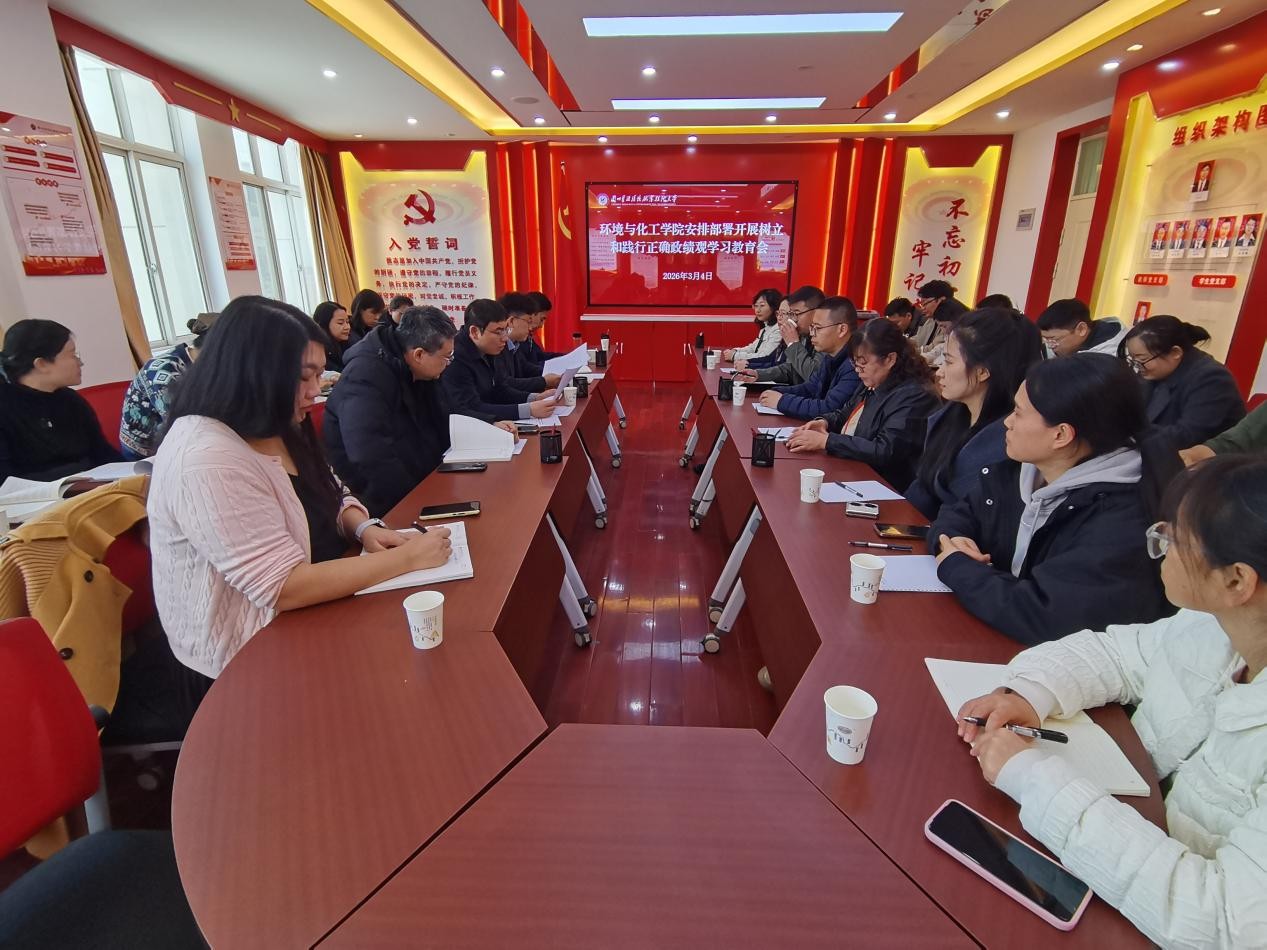 3月4日中午,环境与化工学院党委召开专题会议,传达学习上级及学校有关会议精神,对学院开展树立和践行正确政绩观学习教育进行安排部署,学院全体党员参加会议,会议由学院党委书记金志刚主持。