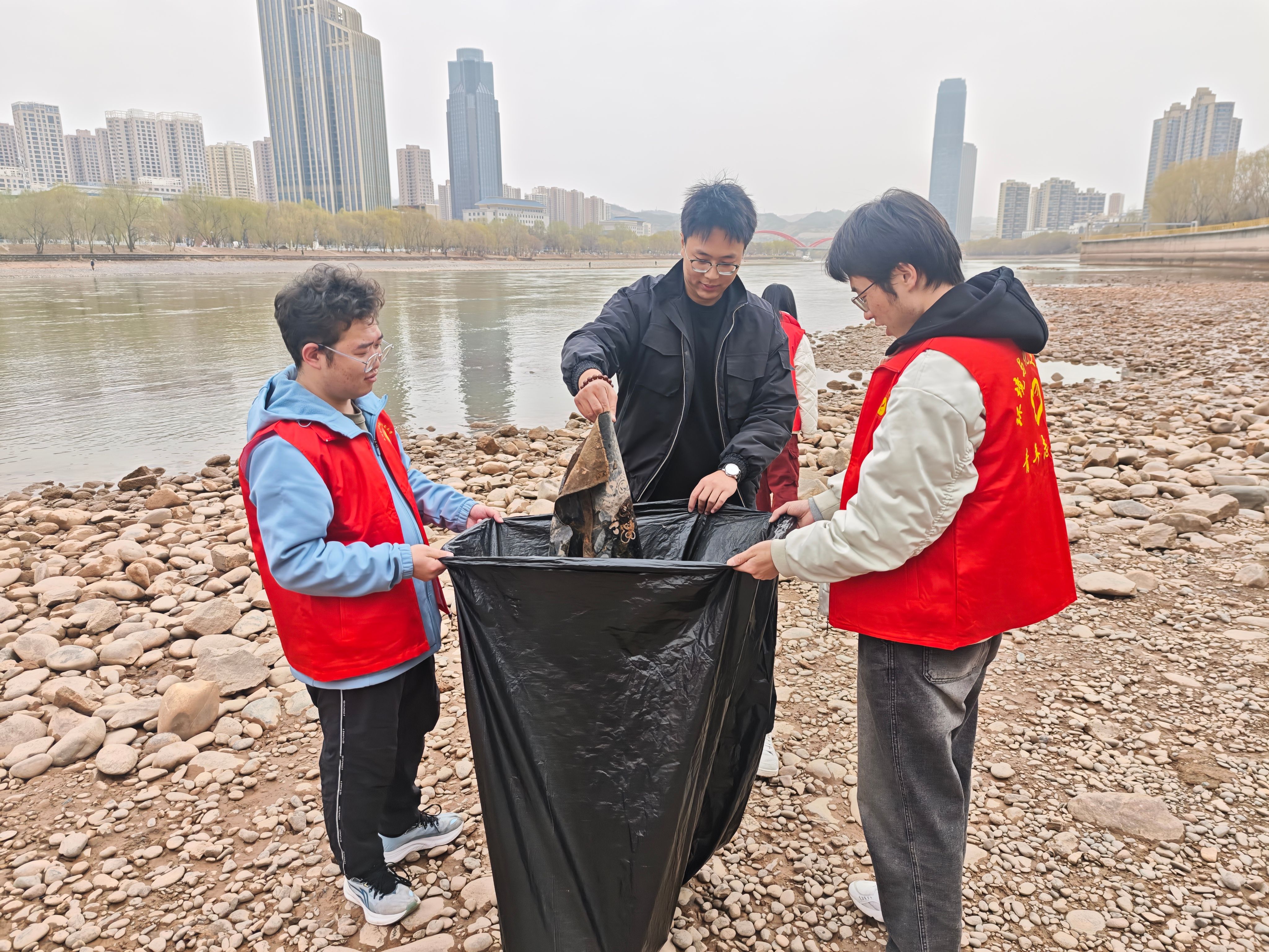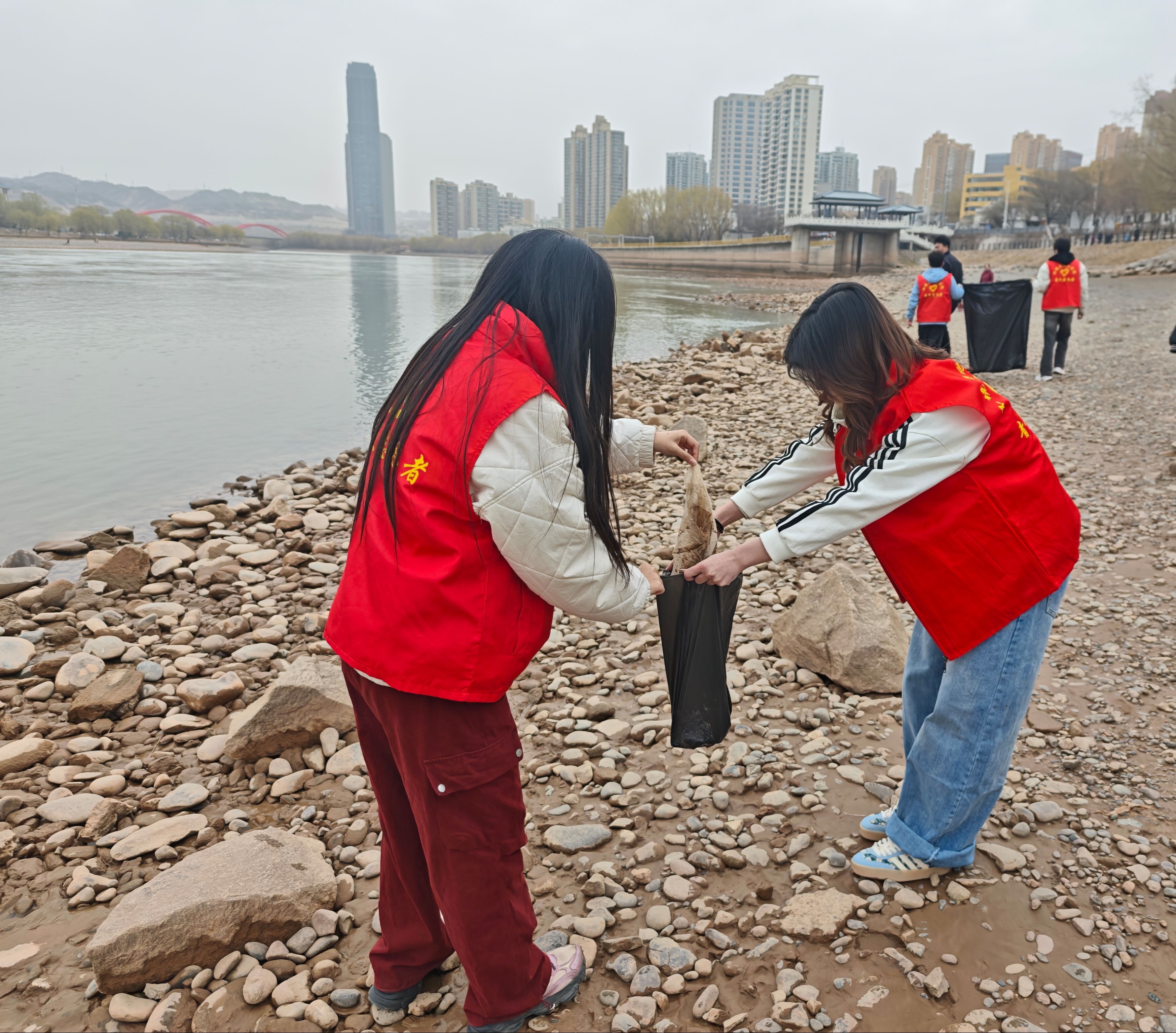 随后,志愿者们身穿红马甲,手持环保袋等工具,分组分段对黄河沿岸的烟头、纸屑、塑料瓶等垃圾进行了细致清理。大家发扬不怕脏、不怕累的精神,用实际行动清洁黄河之滨。同时,部分志愿者还向过往市民耐心讲解黄河流域生态保护知识,呼吁大家共同关注黄河、爱护黄河,杜绝不文明行为,积极参与到保护母亲河的行动中来。