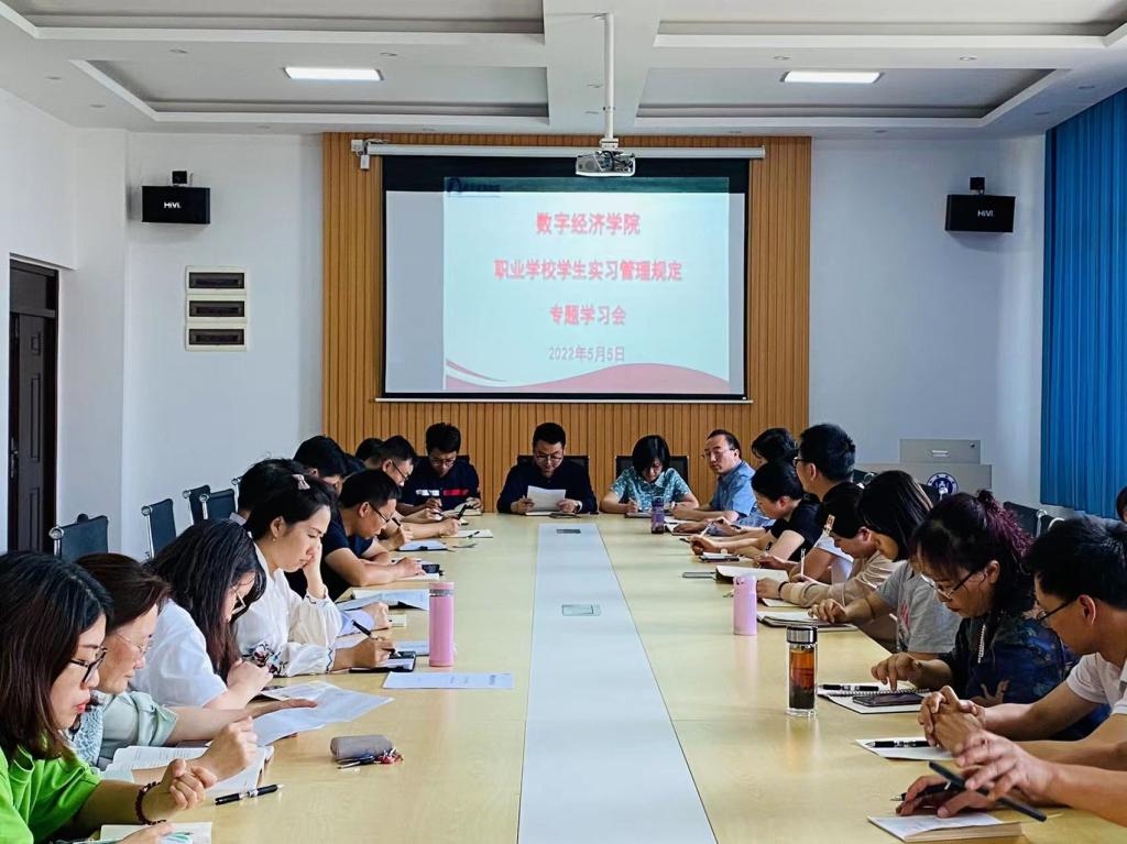 5月5日,数字经济学院召开实习管理专题学习会,会议由党总支书记郎润华主持,全院教职工参会。