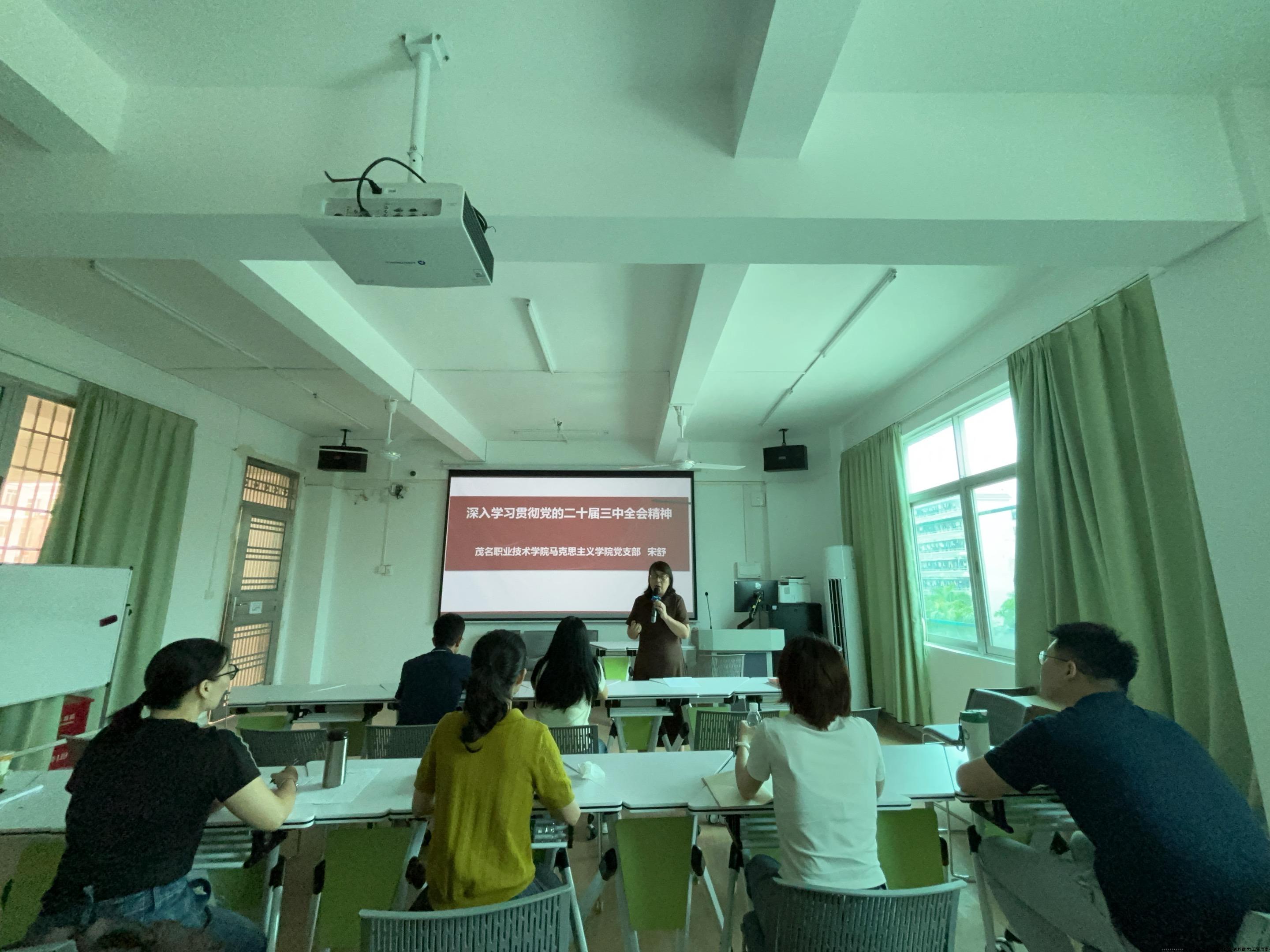 为深入学习贯彻党的二十届三中全会精神,引导党员准确把握全会精神的实质和丰富内涵,9月24日上午,马院党支部书记宋舒在支部党员中以《深入学习贯彻党的二十届三中全会精神》为题讲授专题党课。