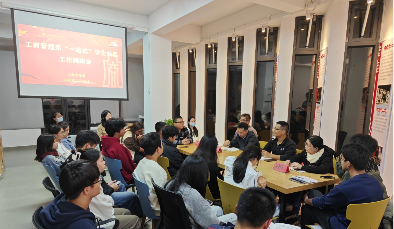 “同学们在学习和生活中有遇到什么困难?”“对学校学生管理工作有什么建议?”……近日,工商管理系于竹苑社区党建+工作站开展工商管理系“一站式”学生社区工作调研会。工商管理系党总支副书记许志敏、黄智萌,工商管理系学工办主任李海铭及全体辅导员走进学生社区,与学生代表一起唠家常、谈学习、聊生活,现场为同学们答疑解惑、排忧解难。学生工作处副处长王仲宙一同参加了调研会。