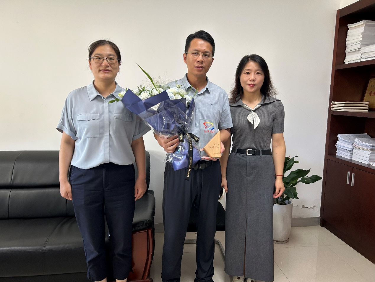 9月16日下午,镇海区庄市街道党工委委员王燕娜、庄市街道党建综合办工作人员崔圆为宁波工程学院建筑与交通工程学院交通工程系党支部书记郭璘送来了2025年“镇海好人”的荣誉证书。此次荣誉的授予,不仅是对他个人多年来深耕交通科研与服务工作的高度认可,更是对其用科技赋能城市发展、用行动传递社会责任的充分肯定。