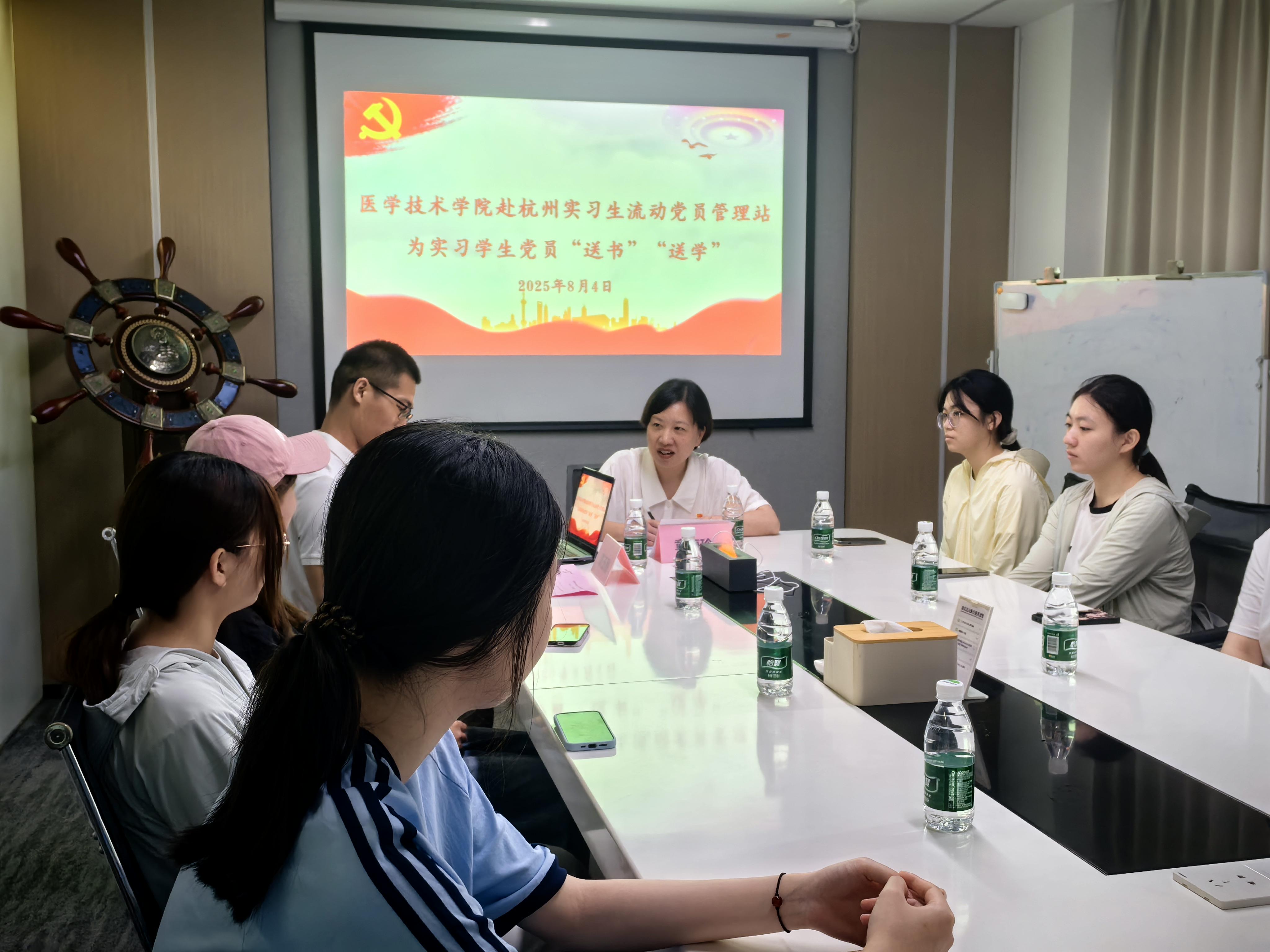 8月4日上午,医学技术学院党总支书记章海玲带队赴杭州实习生党员流动管理站开展“送学”活动,为在杭州片区的15名实习生党员和入党积极分子送去学习资料、微党课,确保他们不漏学、不掉队。