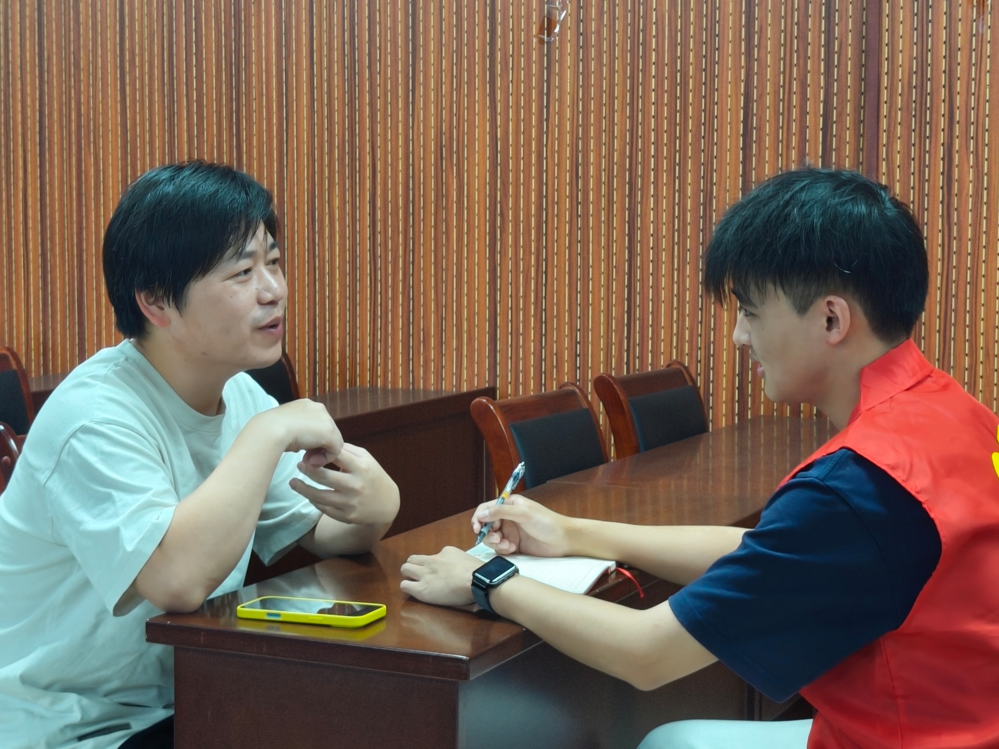 图为实践团成员冯艺驰对新张俞村平安工作负责人进行访谈。章之悦 供图