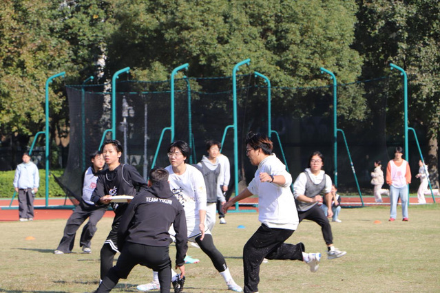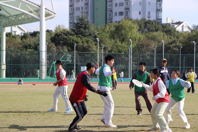 11月19日下午,5人制师生团体飞盘Hat赛在操场火热开赛,成为师生互动的暖心赛场。本次比赛联合教工飞盘协会和Monster飞盘社开展,得到宁波市飞盘协会和宁波市各飞盘俱乐部的大力支持,比赛采用随机分组,小组循环赛加淘汰赛模式,共八支队伍,每队12人且男女比例均衡,师生一起公平竞技。赛场上,队员们在队长带领下并肩作战,飞盘在空中划出一道道优美弧线,跑位、传接、得分一气呵成,欢声笑语与加油呐喊交织。不同学院、不同年级、不同专业的师生打破身份界限,在协作中增进了解,在竞技中收获友谊,完美诠释了“师生同行、互助共进”的活动理念。最终,前国家队飞盘主教练梁壮带领的黑队凭借默契配合斩获冠军,而师生间愈发融洽的关系成为赛事最珍贵的收获。