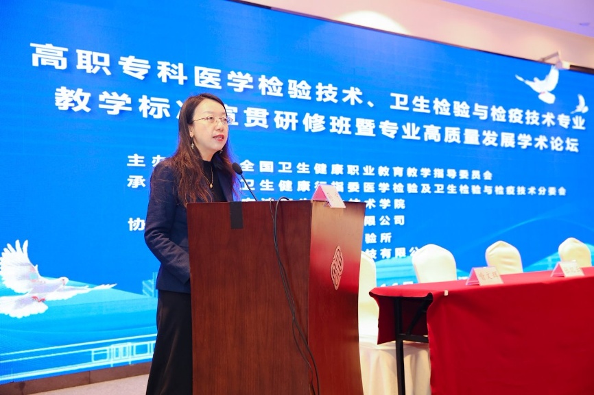 全国卫生健康行指委医学检验及卫生检验与检疫技术专业分委会副主任委员、泉州医学高等专科学校党委副书记王翠玲,全国卫生健康行指委副秘书长王瑾先后致辞。两位专家围绕职业教育改革发展方向、医检卫检专业建设核心任务等内容提供了重要指导,并为本次会议定下了“解读标准、凝聚共识、推动落地”的核心基调。