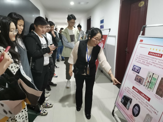 期间,金馆长还向大家展示了各时期的红色货币,以图文并茂的形式向大家讲解红色金融发展过程中的故事,从这些历史中,同学们深刻体会到了中国共产党当时革命环境的严峻性,切实领悟到革命成果来之不易,也对中国共产党人艰苦奋斗的精神产生了由衷的钦佩。随后,馆长按照时间线索为学生们讲解了从大革命、土地革命、抗日战争、解放战争各时期到新中国诞生,“钱袋子如何捍卫枪杆子”的红色金融革命故事,再现中国共产党人在艰苦卓绝的革命环境下,通过红色金融体系的建设,如何发展经济、壮大队伍与敌斗争的峥嵘岁月。
