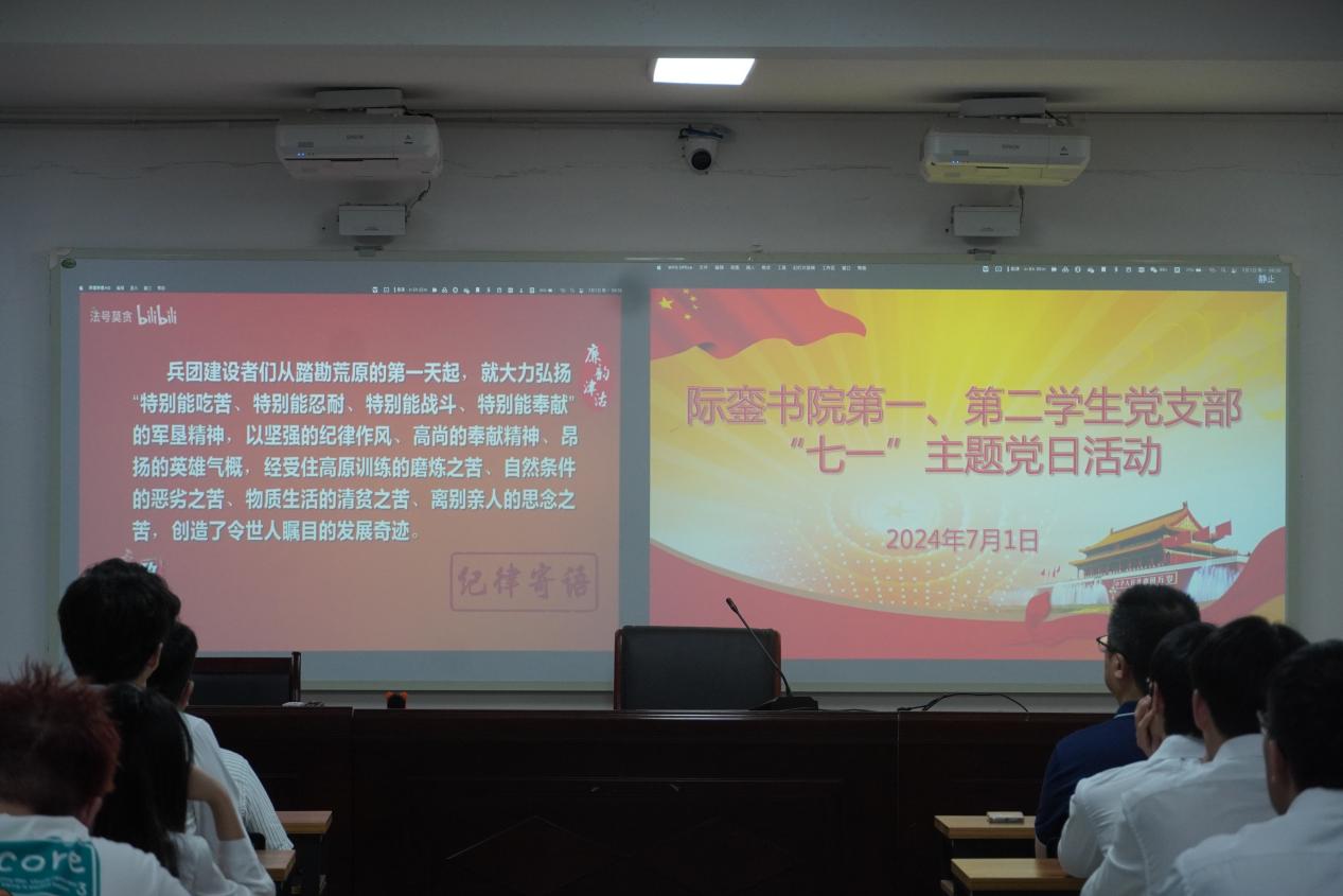 为庆祝中国共产党成立103周年,增强党员荣誉感、责任感和使命感,7月1日,际銮书院第一、第二学生党支部于书院博学厅开展“七一”主题党日活动。