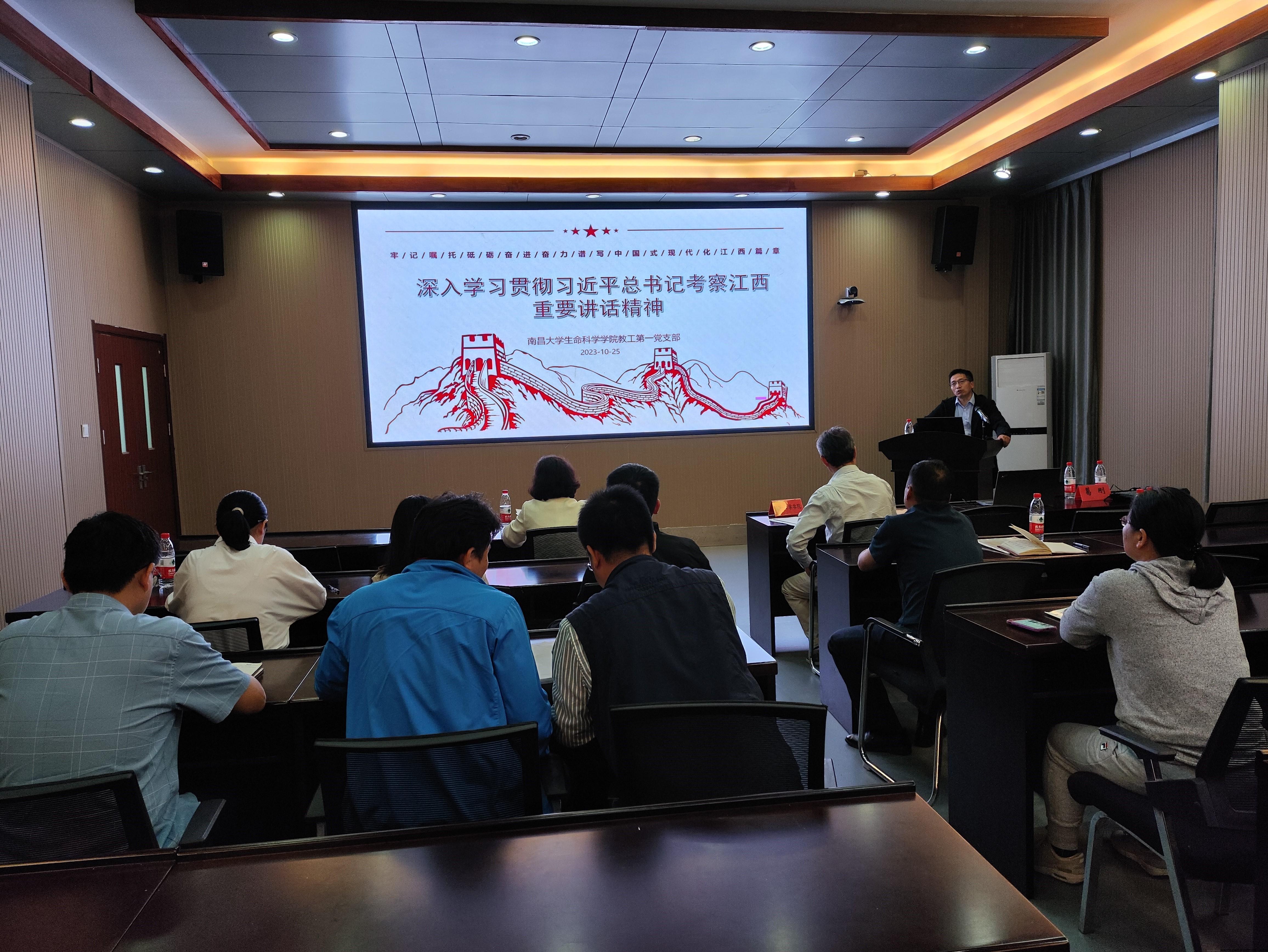 2023年10月25日,南昌大学生命科学学院教工第一党支部举行了一次学习活动,深入学习和贯彻习近平总书记在江西考察时的重要讲话精神。此次学习由支部副书记彭扣同志引领。