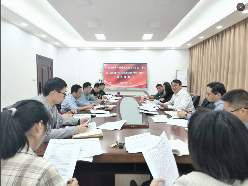 3月24日,学院召开党委会(扩大)会议,学习贯彻习近平总书记关于深入贯彻中央八项规定精神学习教育的重要讲话和重要指示精神,传达党中央决策部署、省委工作要求和学校党委工作安排,研究部署我院深入贯彻中央八项规定精神学习教育工作。会议审议通过了《环境与化学工程学院关于深入贯彻中央八项规定精神学习教育的工作计划》。学院党委书记刘继勇主持会议并作动员讲话,学院党委委员参加会议,其他班子成员和各党支部书记列席会议。