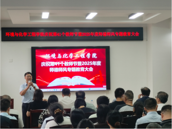 9月11日下午,学院在Q204会议室召开了庆祝第41个教师节暨2025年度师德师风专题教育大会。会议由学院党委书记刘继勇主持,全院教职工参加会议。