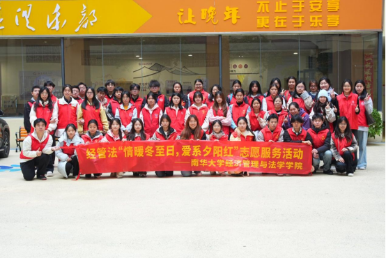 2025年12月21日,南华大学经济管理与法学学院“在商言商”心理成长辅导室联合志愿者工作部,组织志愿者走进衡阳市佰善养护院,开展“情暖冬至日,爱系夕阳红”志愿服务活动。志愿者们以陪伴为纽带,在冬至日为养老院的老人们送上暖心关怀,让养护院处处洋溢着温馨氛围。