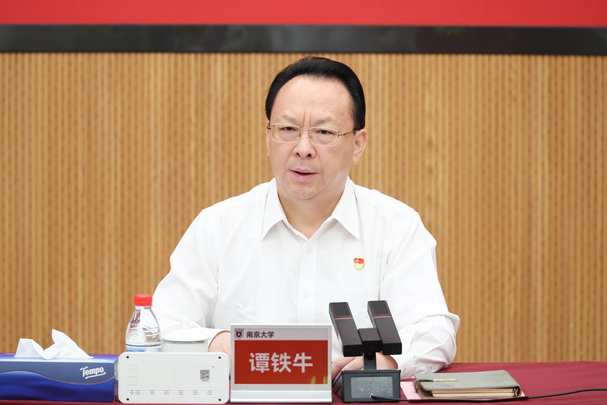 7月4日,南京大学在仙林校区召开深入贯彻中央八项规定精神学习教育推进会,深入学习贯彻习近平总书记关于加强党的作风建设的重要论述,认真落实关于开展深入贯彻中央八项规定精神学习教育“回头看”的部署安排,总结校内学习教育阶段性成果,交流经验做法,研讨思路举措,明确下一步工作方向,确保学习教育取得实效。校党委书记、中国科学院院士谭铁牛出席会议并讲话。