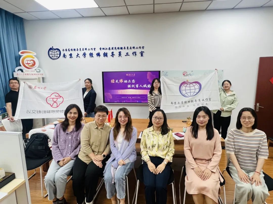 为加强辅导员名师工作室建设,深化高校思想政治工作经验共享与创新实践,5月23日下午,南京大学“经纬”辅导员工作室与苏州大学“以文铸魂”辅导员领航工作室开展交流研讨。“经纬”辅导员工作室负责人陈卉主持交流,双方围绕工作室建设经验、思政育人路径及未来合作方向展开深入交流。