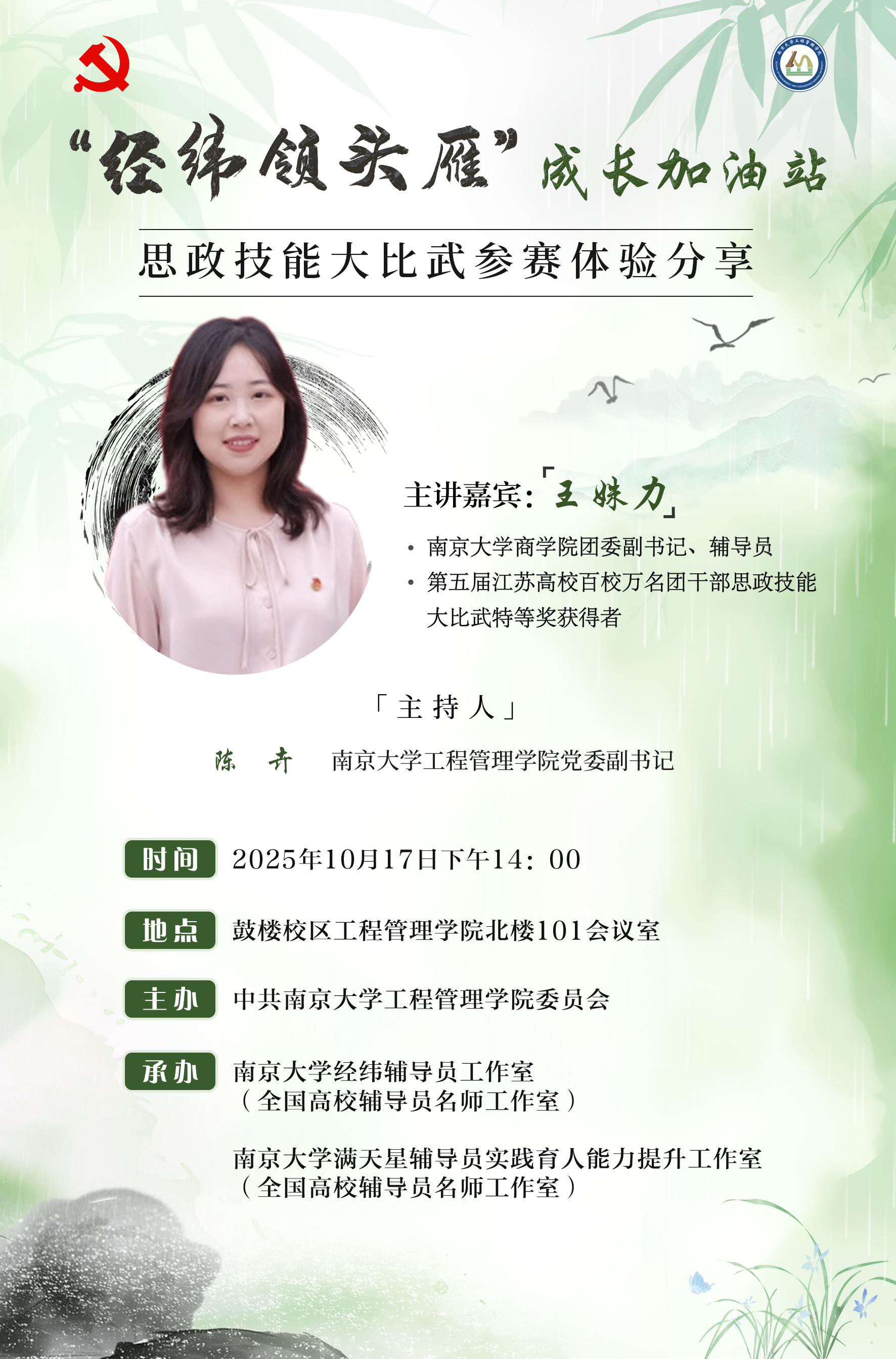 未来,工程管理学院将持续加强南京大学“经纬”辅导员工作室(全国高校辅导员名师工作室)建设,以“经纬领头雁”系列品牌活动为依托,持续开展更多成长赋能活动,推动思政教育提质增效。
