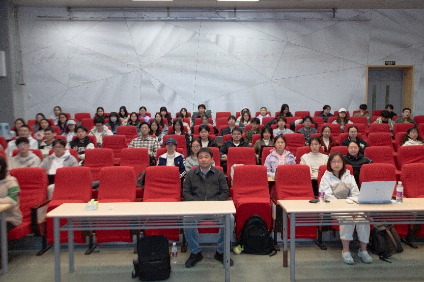 同学们认真听讲,提问环节积极举手发言,与杨老师、贺学姐和常学长展开深入探讨。