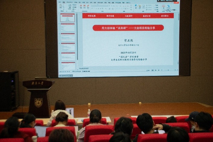 为帮助同学们更好地理解和参与大学生创新训练项目,点燃创新实践热情,明确规划方向,由商学院满天星学术实践科创中心主办的满天星学术讲堂——大学生创新训练项目指导与经验分享指导分享会,于10月23日晚成功举办。本期讲堂邀请了南京大学商学院金融与保险学系的杨念老师、、营销与电子商务系2023级本科生贺书语同学以及以及经济系(拔尖计划)2022级本科生常正然同学,分别从大学生创新训练项目指导老师与国家级大创项目主持人的视角,为同学们带来大创项目相关的经验分享与方法指导。