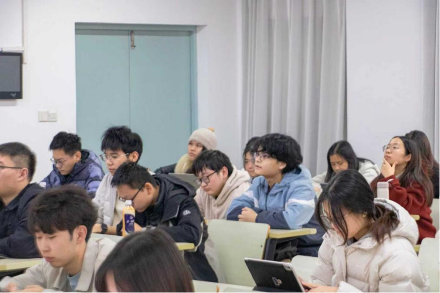 同学们认真听讲,在提问环节积极举手发言,与学长、学姐展开了深入探讨。