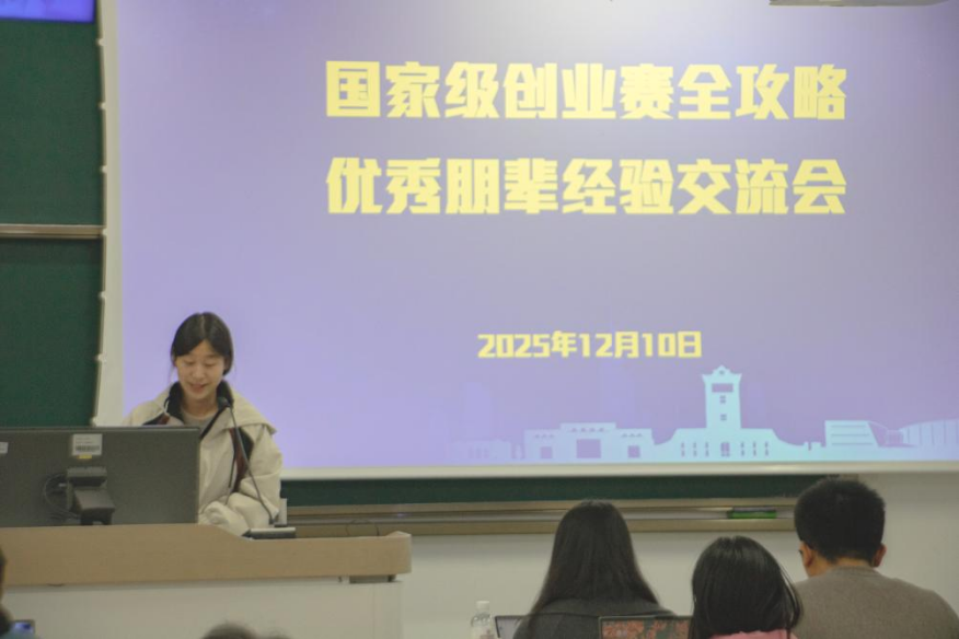 为助力南商学子更好备战2026年国家级创业赛事,12月10日傍晚,商学院满天星学术实践科创中心成功举办“满天星”商知讲堂——2026年国家级创业赛全攻略优秀朋辈经验交流会。本次活动邀请工商管理系2020级博士生、担任过多项创业大赛评审的路端学姐,营销与电子商务系2022级博士生柳亚学姐,以及会计系2024级硕士生王博言学长,分别从不同维度为同学们带来国家级创业赛事的专属指导。