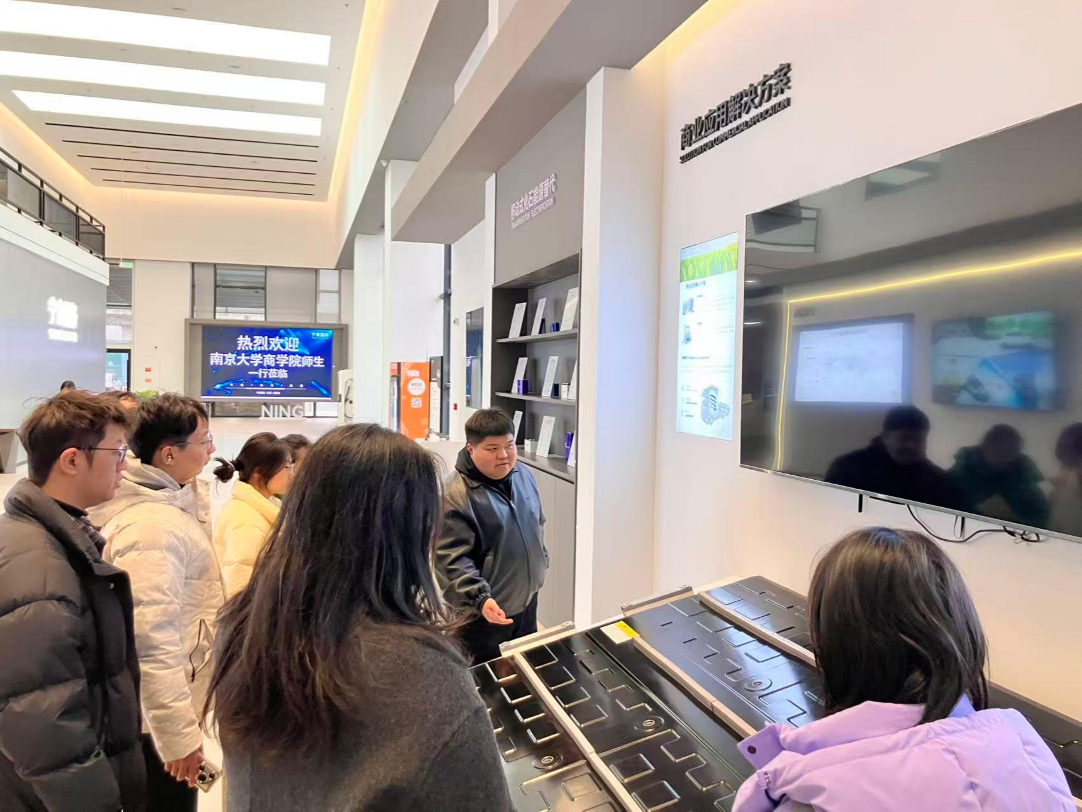 1月13日,罗洁老师带领同学们第一次来到润岚时代。在袁媛女士和企业工程师的带领下,师生一行参观了公司展厅和设备车间,对作为宁德时代产业链深度合作伙伴的江苏润岚时代新能源科技有限公司有了初步印象,也对新能源后市场服务有了大致了解。孙徐康弘先生主持召开了项目发布会,提出了零碳文旅、后市场服务、工商业储能与消费端产品四大调研课题,同学们随即组成“宁电先锋”团队、“RunPower”团队、“你说得对”团队与“宁家侦察兵”团队四支团队,针对各自的调研课题紧锣密鼓开始了调研筹备。