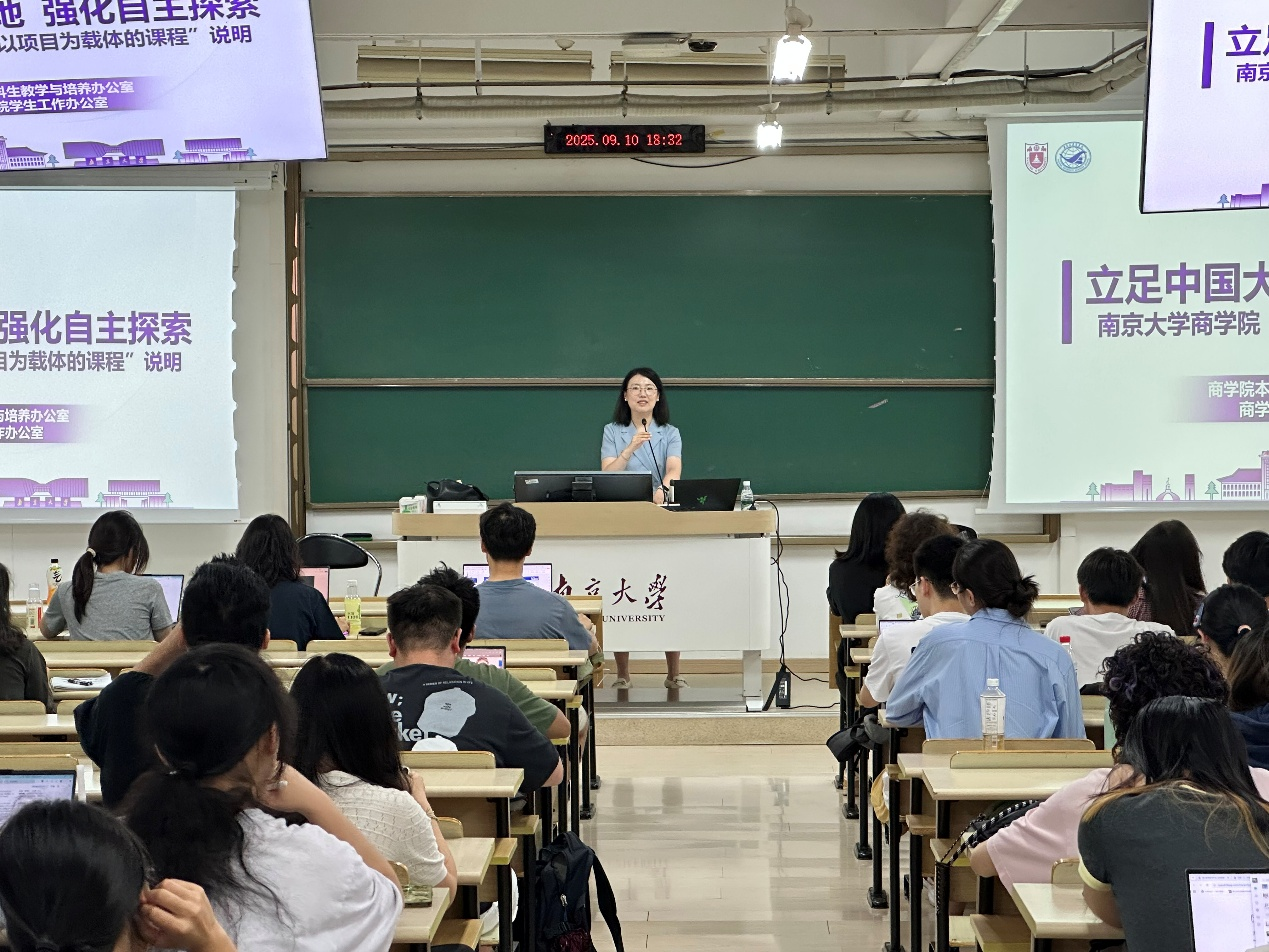 9月10日晚,南京大学商学院“以项目为载体的课程”(以下简称项目制课程)宣讲会在仙林校区顺利召开。本次会议由商学院团委副书记、满天星辅导员育人工作室管理运营中心主任罗洁老师主持并担任主讲,面向本学年选课学生及课程助教,全面介绍了项目制课程的实施方案与特色亮点。