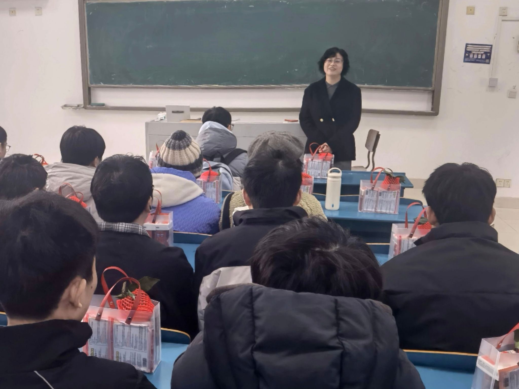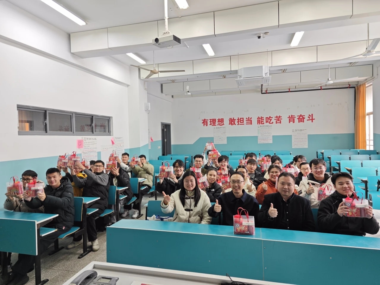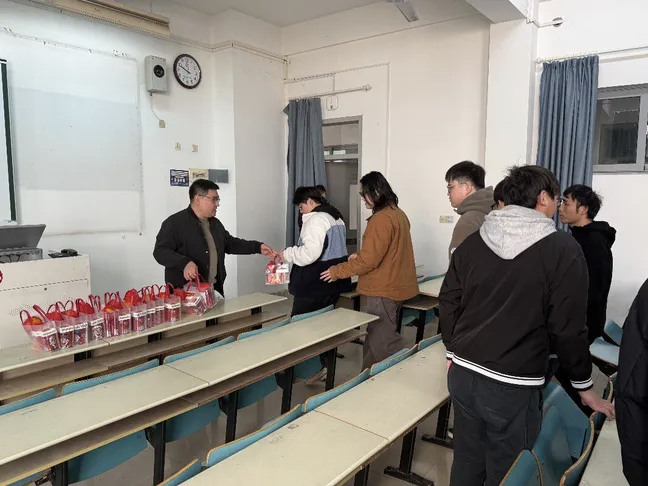随着考试临近,学院以班级为单位,各班班主任、第二班主任及关工委老师共同为学生送上第二批慰问品——“考研加油包”,其中每一样物品都蕴含着独特的寓意与祝福:橙子:寓意心想“试”成,一站“橙”硕,祝愿同学们考试顺利、一举成功;薯愿薯片:取“所愿皆所得”之意,期盼同学们的努力都能换来理想的成果;咖啡:帮助同学们提神醒脑,在紧张的备考中保持最佳状态;暖宝宝贴:在寒冷的冬日为同学们送去温暖,驱散寒意;纸巾:谐音“纸”定上岸,祝福同学们稳定发挥、如愿以偿;旺仔牛奶:象征“福运旺旺”,为同学们带来好运与旺气。