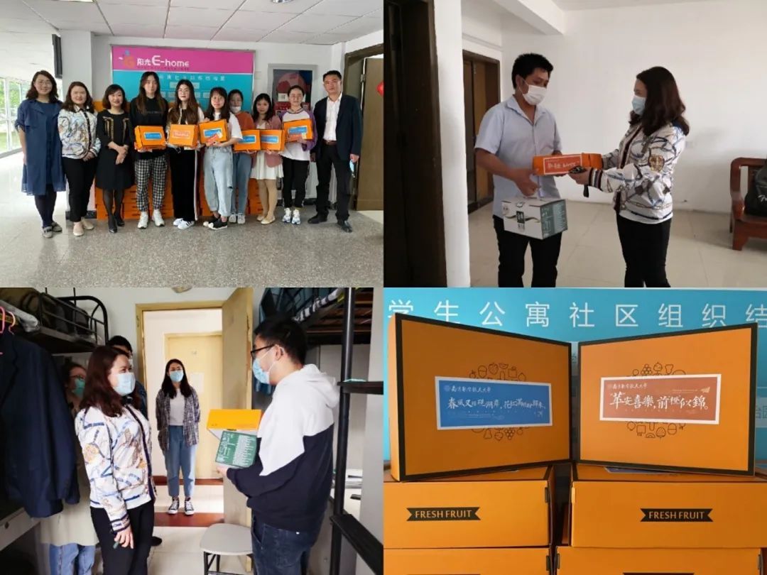 5月1日,学院党委副书记涂志宏同学校相关职能部门领导一起前往学生宿舍了解学生返校后的生活、学习情况,为同学们送去了暖心水果,此外,她还特别看望了由湖北地区返宁的两位博士生并代表学院送去了关心和慰问。