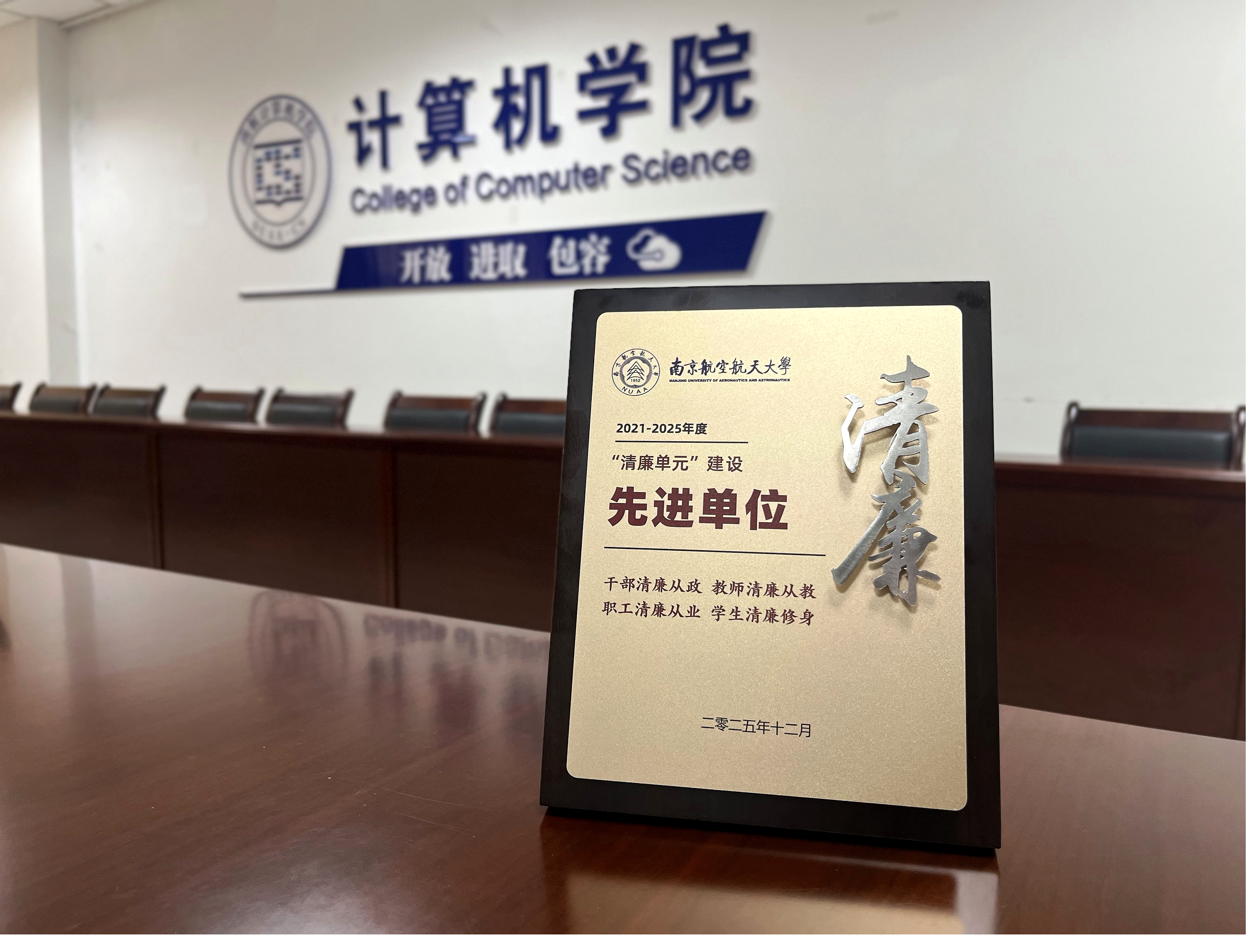 近日,南京航空航天大学召开警示教育大会暨“清廉南航”建设推进会,对“清廉单元”建设先进单位和廉洁文化建设贡献奖获得者进行了表彰,计算机科学与技术学院党委获评学校2021-2025年度“清廉单元”建设先进单位。自2022年学校开展“清廉单元”建设工作以来,学院工作案例连续四年入选年度“清廉单元”十佳案例,彰显了学院党委在全面从严治党、推进“清廉学院”建设上的扎实成效。