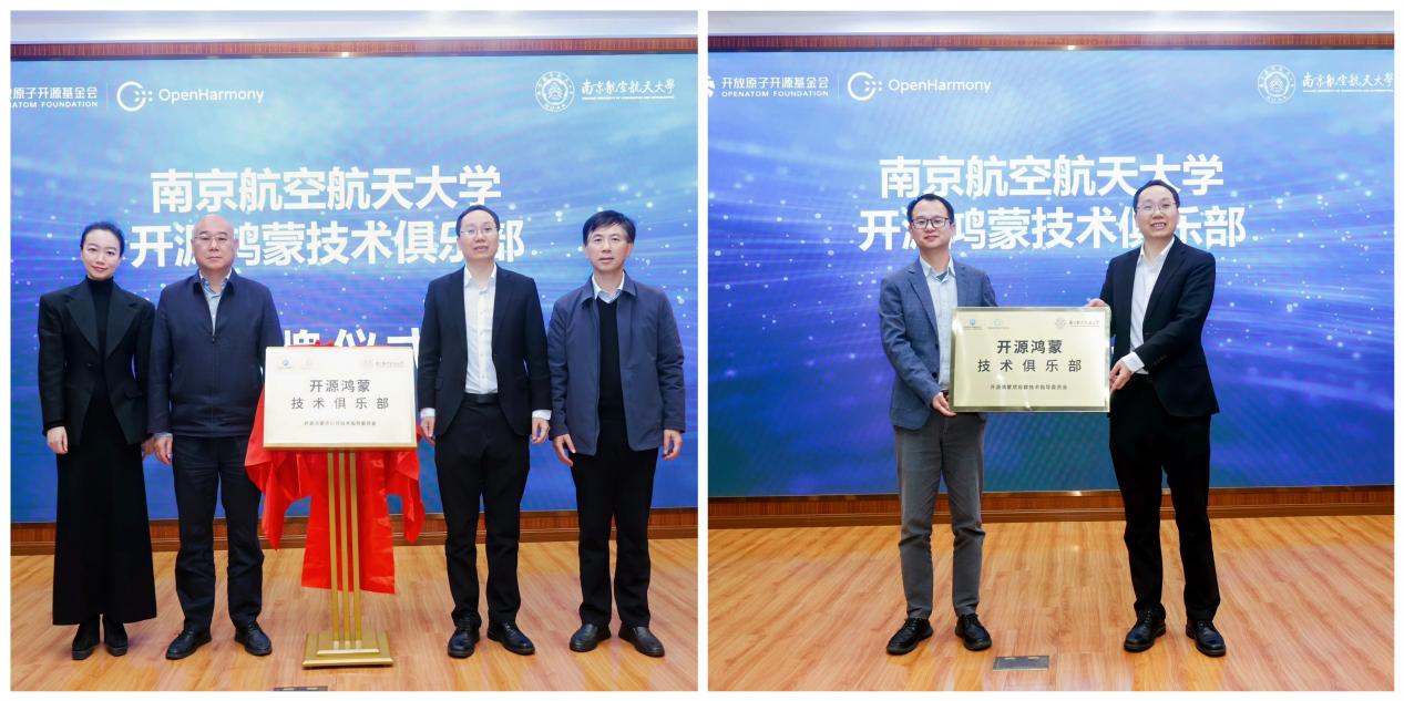 仪式现场,黄志球、陈海波、孔垂谦、沈妍共同为俱乐部揭牌。这标志着南航与开源鸿蒙生态的合作正式迈入实质性推进阶段。