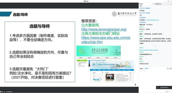第十三届全国节能减排大赛一等奖团队队长周小川从如何选题、赛前准备、队伍组建等方面分享竞赛经历,引导同学们从往届特等奖作品中寻找创新思路。