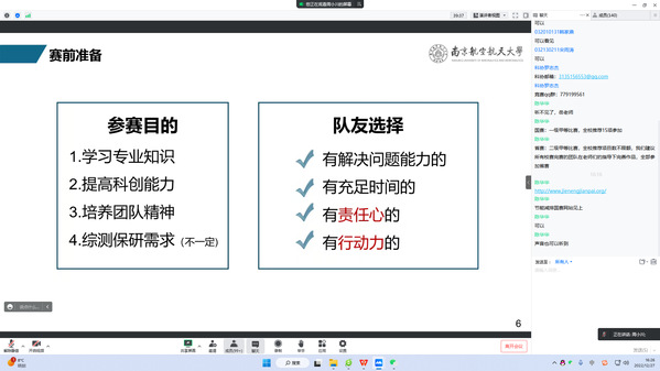12月27日,南京航空航天大学第十六届节能减排竞赛宣讲会在线上举办。校节能减排大赛组委会主席、能源与动力学院燃烧传热与热能系副教授岳晨,学院团委书记陈华华,第十三届全国节能减排大赛一等奖获奖学生代表、博士生周小川,以及来自全校各学院的学生代表参加本次宣讲会。