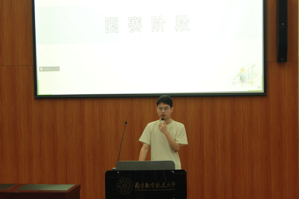 第十六届国赛一等奖团队队员林靖宇分享了团队从校赛到省赛、国赛一路不断进步的经历,从如何选题、如何在省赛的折戟中分析不足并修正方案等具体问题进行了分享,为同学们的参赛之路提供了借鉴和参考。