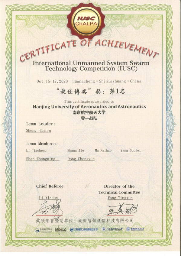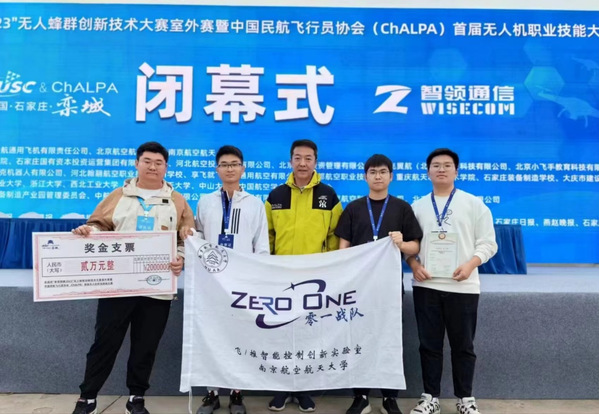 “智领群蜂2023”国际无人蜂群创新技术大赛(IUSC)室外赛暨中国民航飞行员协会(ChALPA)首届无人机职业技能大赛于2023年10月15日至10月17日在河北省石家庄市栾城区隆重举办。由能源与动力学院盛汉霖教授带领的南京航空航天大学零一战队在本次比赛中展现出了高超的技术实力和卓越的团队合作能力,斩获A2赛道总冠军,并被授予“最佳博弈奖”。