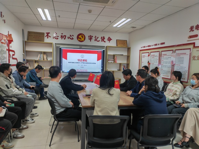 本次学习活动以继续教育学院第四期“守正讲坛”专题学习为契机,东南大学党委巡视办主任李瑛同志应邀作了以“持续拧紧廉洁自律发条以严明的纪律推进党的自我革命”为题的专题辅导报告,光电材料与器件研究所党支部全体党员通过线上会议参加学习。
