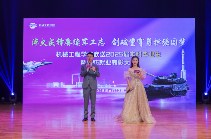 第一篇章“春华秋实·共叙成长”,聚焦学科专业发展,回忆四年校园点滴。大会播放了毕业生纪念视频《毕业了,我想——》,随后毕业年级辅导员叶柳汇报2025届本科生发展基本情况。机械工程学院始终坚守立德树人主责,致力于培养怀揣军工情怀、富有社会责任感的高素质创新人才。2025届机械学子学业水平稳步提升,科创能力日进有功,共获国家级奖项200余项、省部级奖项400余项。在就业方面,年级保研率高达28.77%,位居全校最高,近400名毕业生进入北京大学、浙江大学等国内外一流学府深造学习,升学率达62.6%。学院开展近20次就业能力提升专项活动助力就业,推动就业质量和就业层次再创新高。