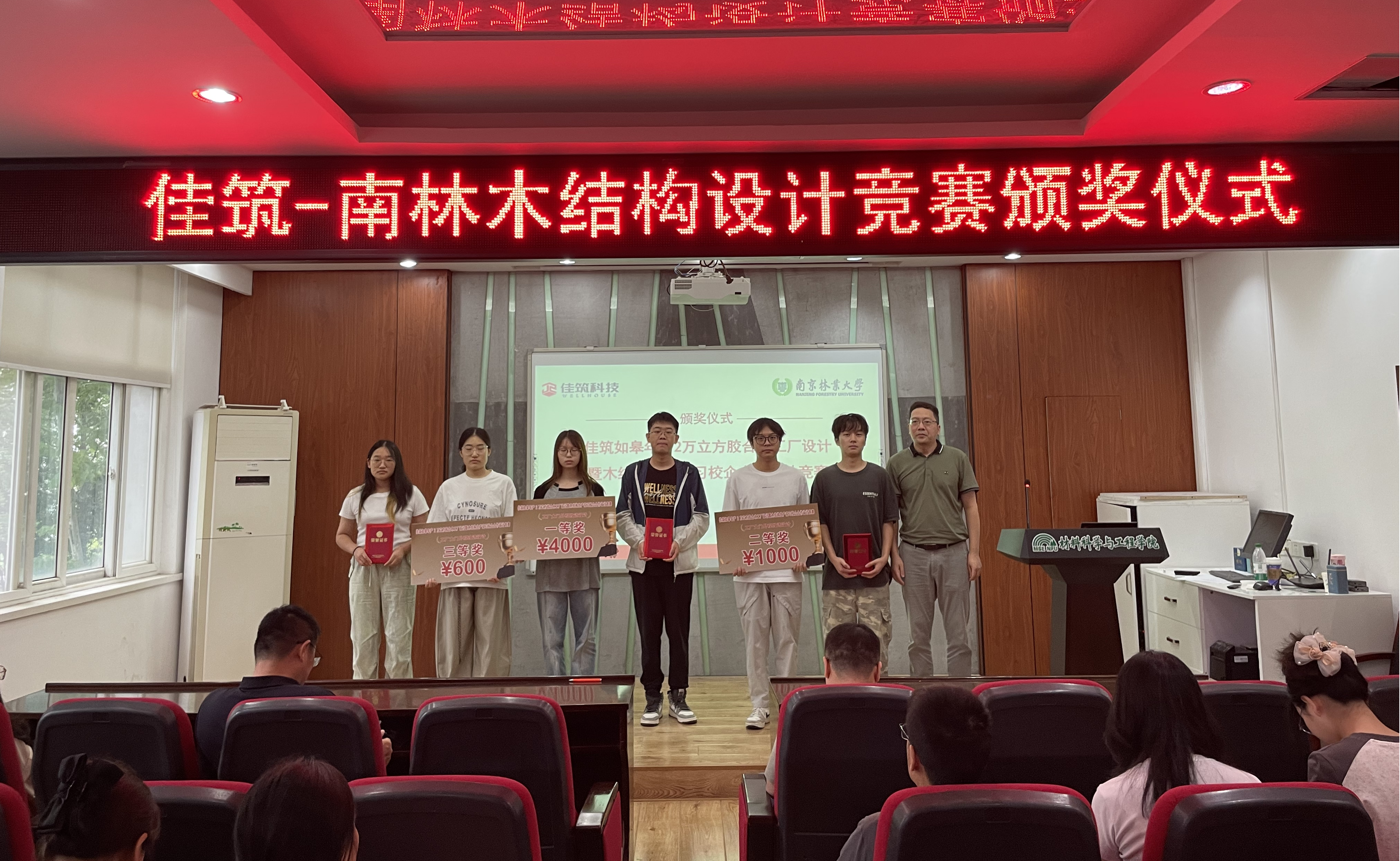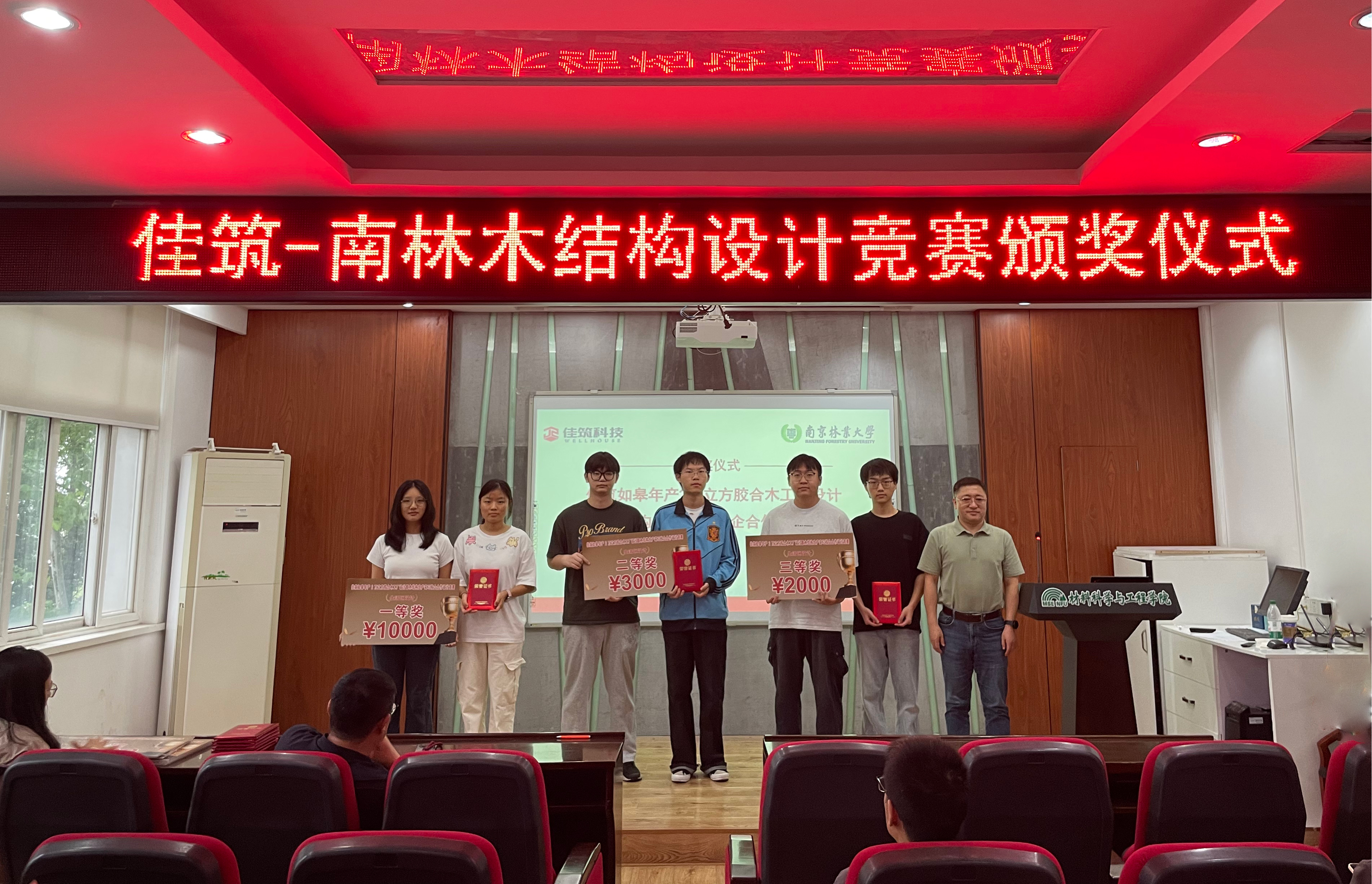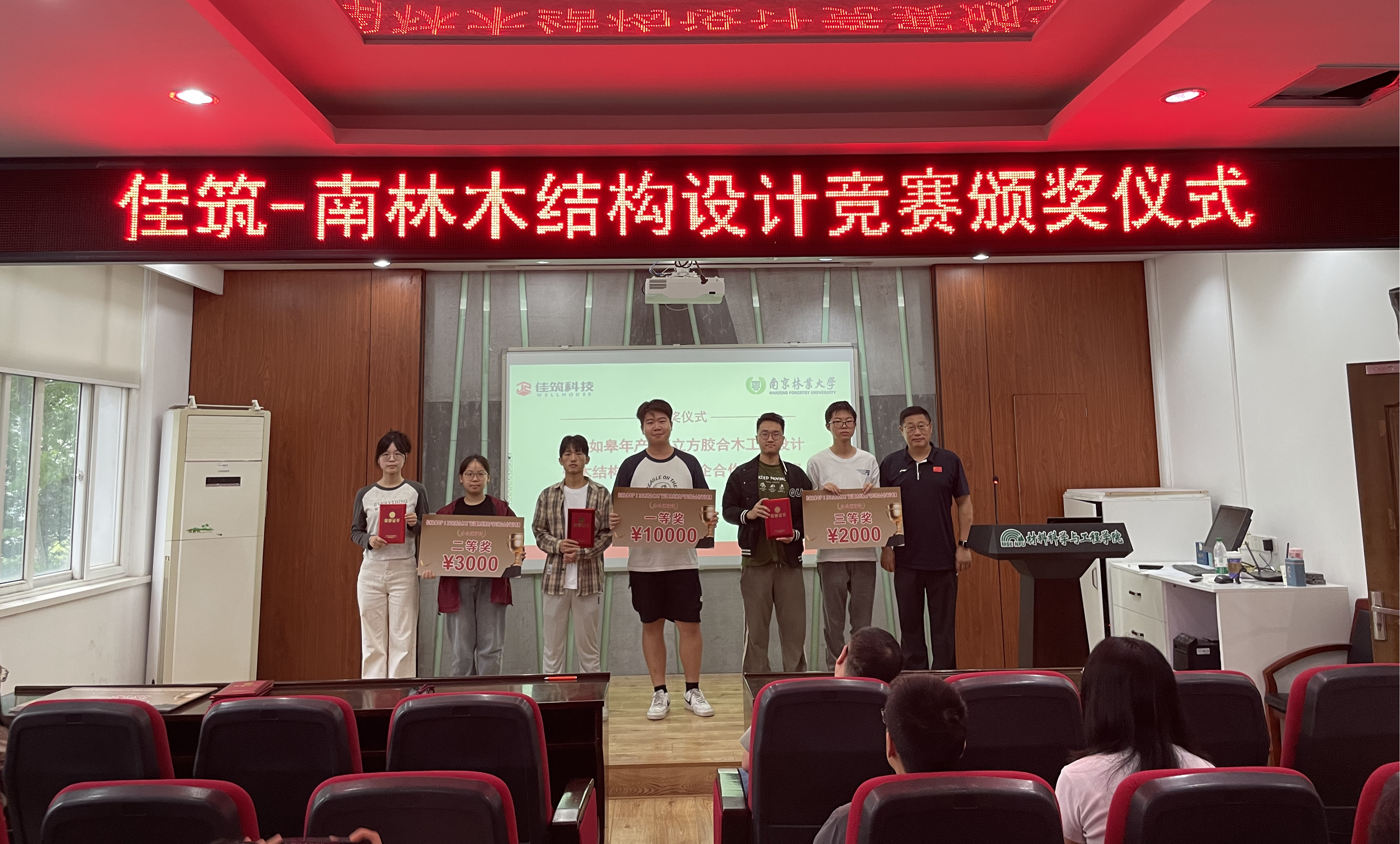 近日,佳筑如皋年产2万立方胶合木工厂设计暨木结构生产实习校企合作设计竞赛颁奖仪式在4211报告厅成功举行。材料学院党委书记孟国忠,党委副书记、副院长蔡志敏,木结构建筑系主任王志强出席仪式并为获奖学生颁奖。颁奖仪式由王志强主持。